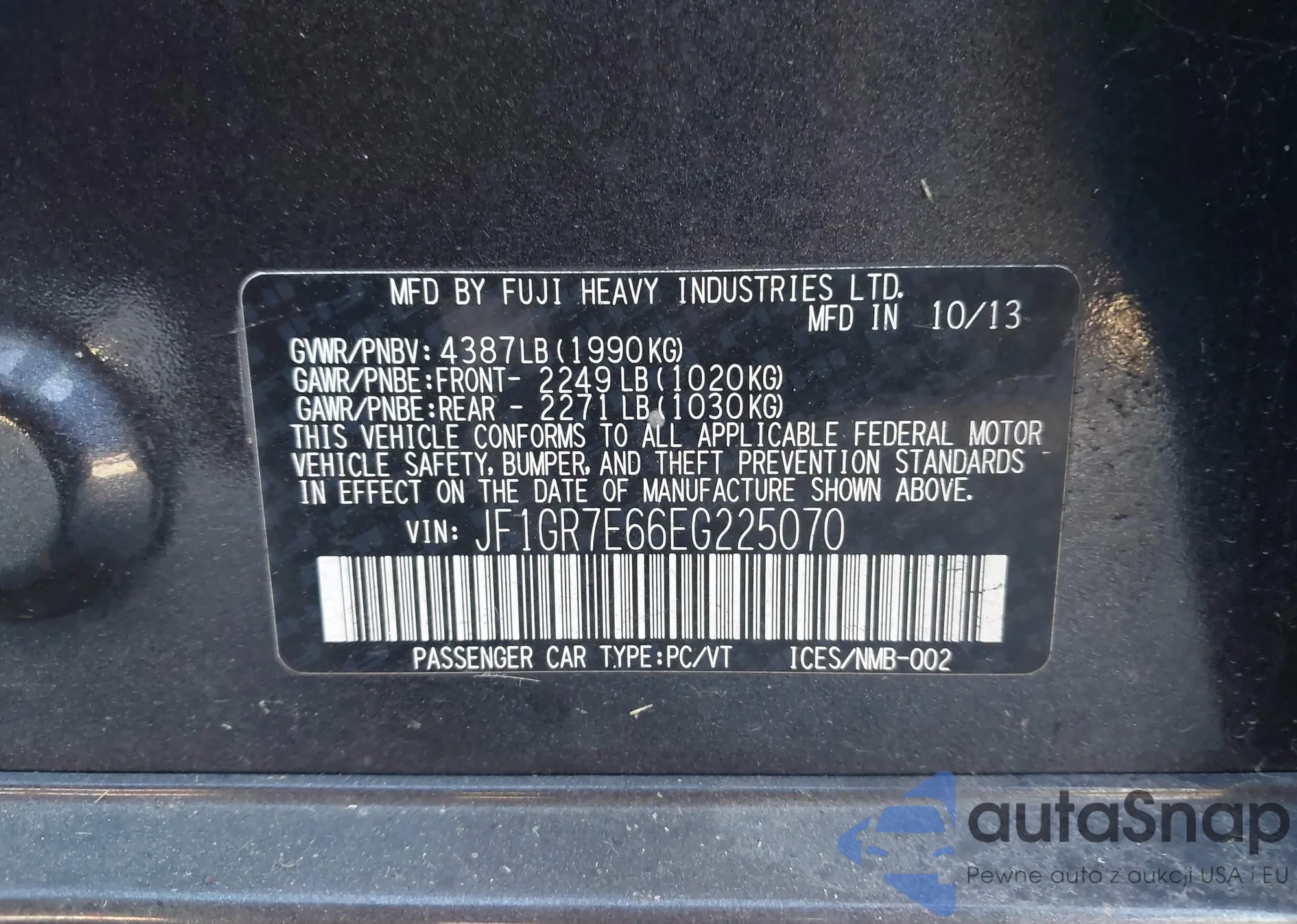 Автомобиль Subaru Impreza WRX 2014 (VIN JF1GR7E66EG225070) продаётся непроверенным продавцом. Рекомендуем проверить отчет Carfax и подтвердить возможность регистрации перед покупкой.