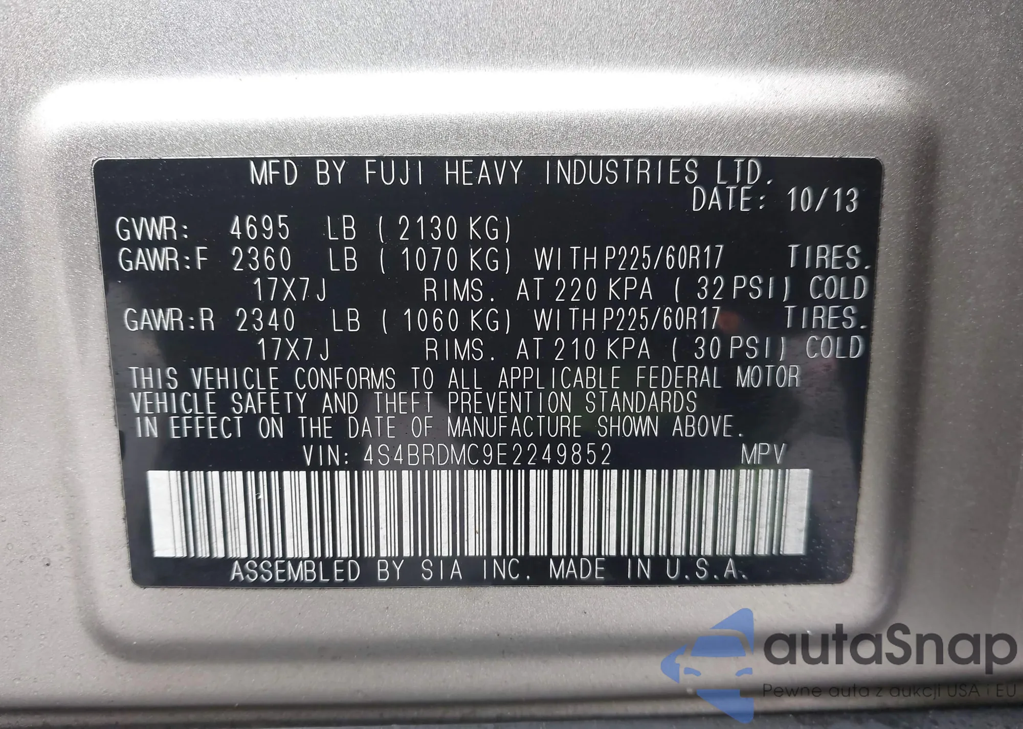 Автомобиль Subaru Outback 2014 (VIN 4S4BRDMC9E2249852) ранее не участвовал в торгах. Документы чистые, пробег соответствует или ниже среднего по рынку. Продаётся страховой компанией — рекомендуем покупку. Доставка в порт займет около 6–8 недель.