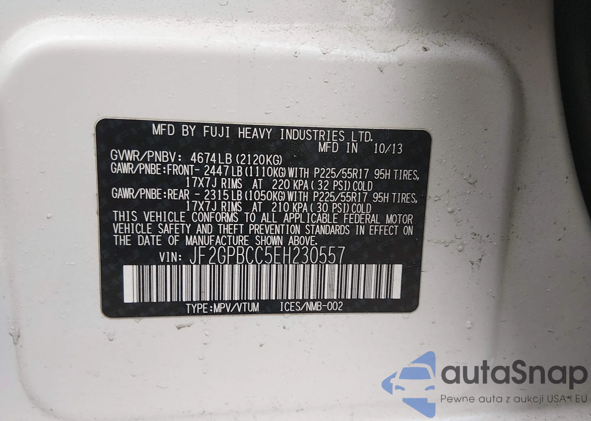 • VIN: JF2GPBCC5EH230557