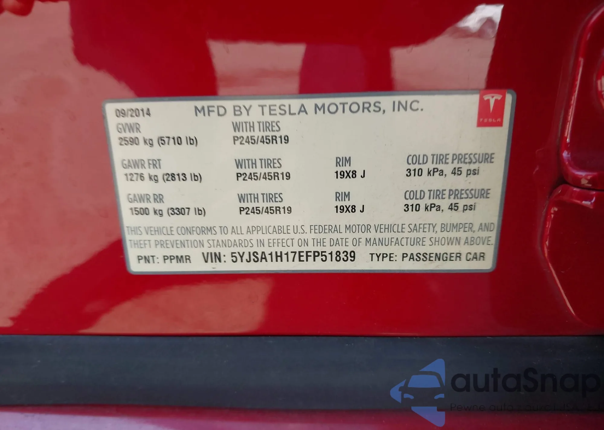 VIN: 5YJSA1H17EFP51839
