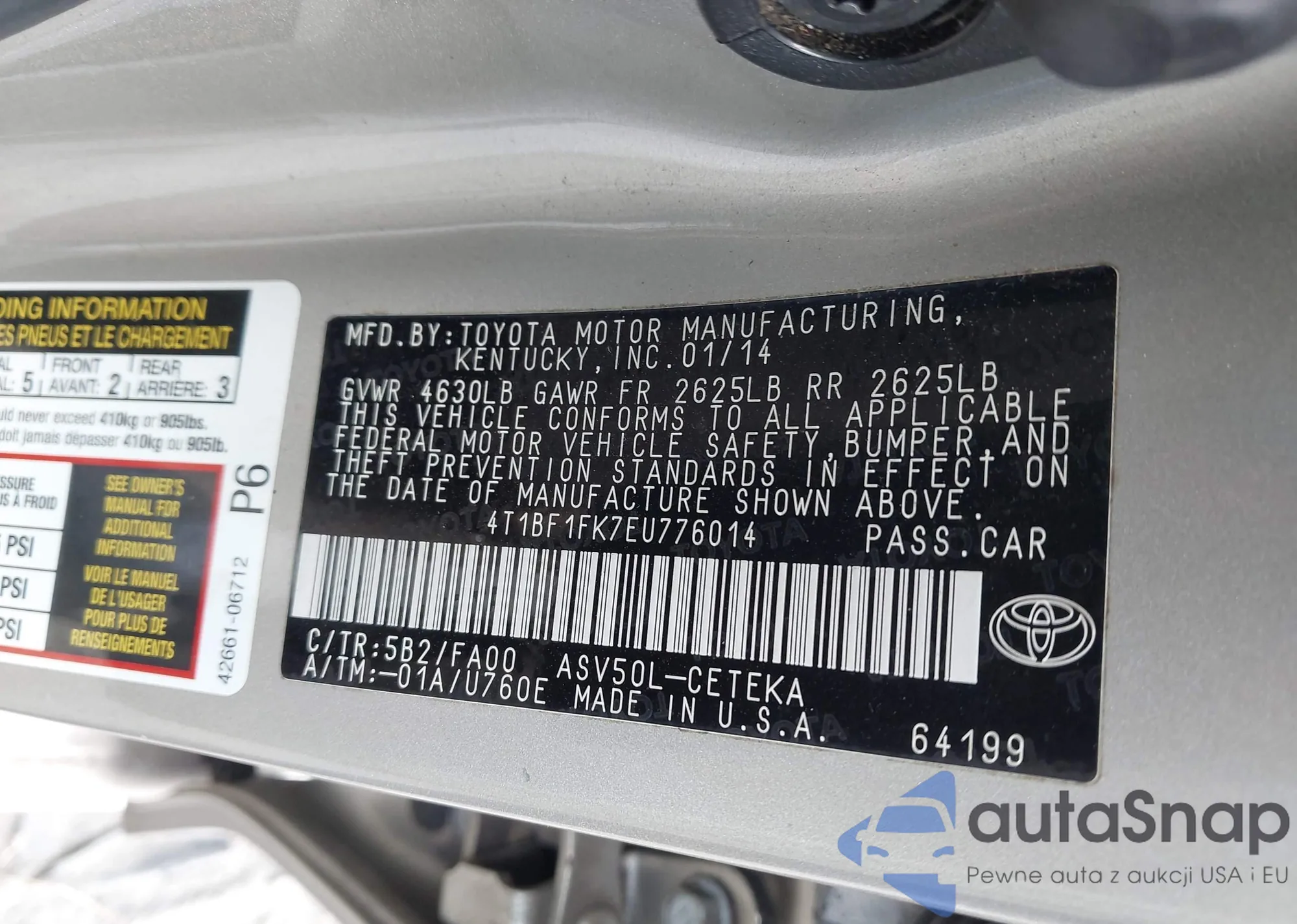 VIN: 4T1BF1FK7EU776014