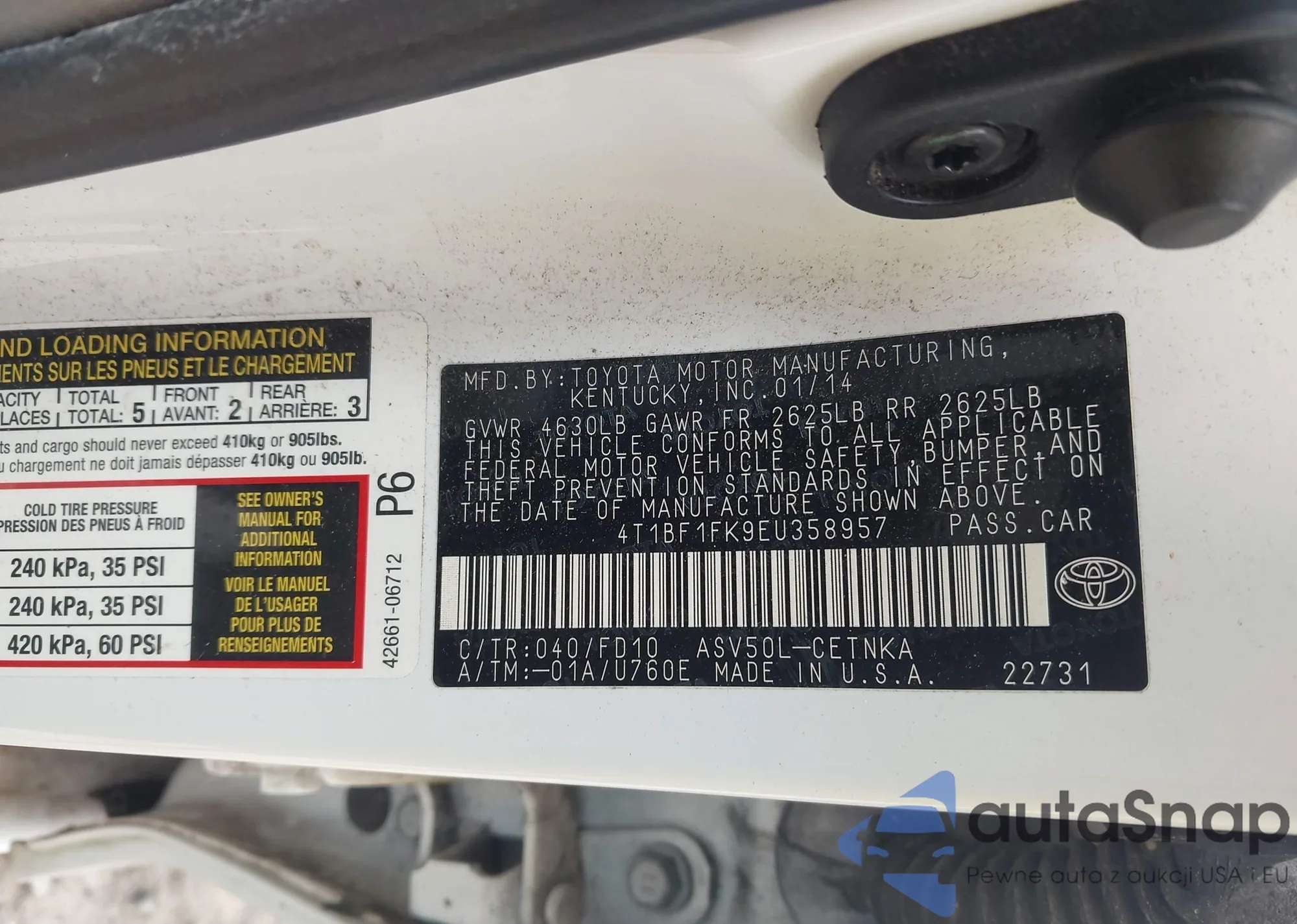 VIN: 4T1BF1FK9EU358957