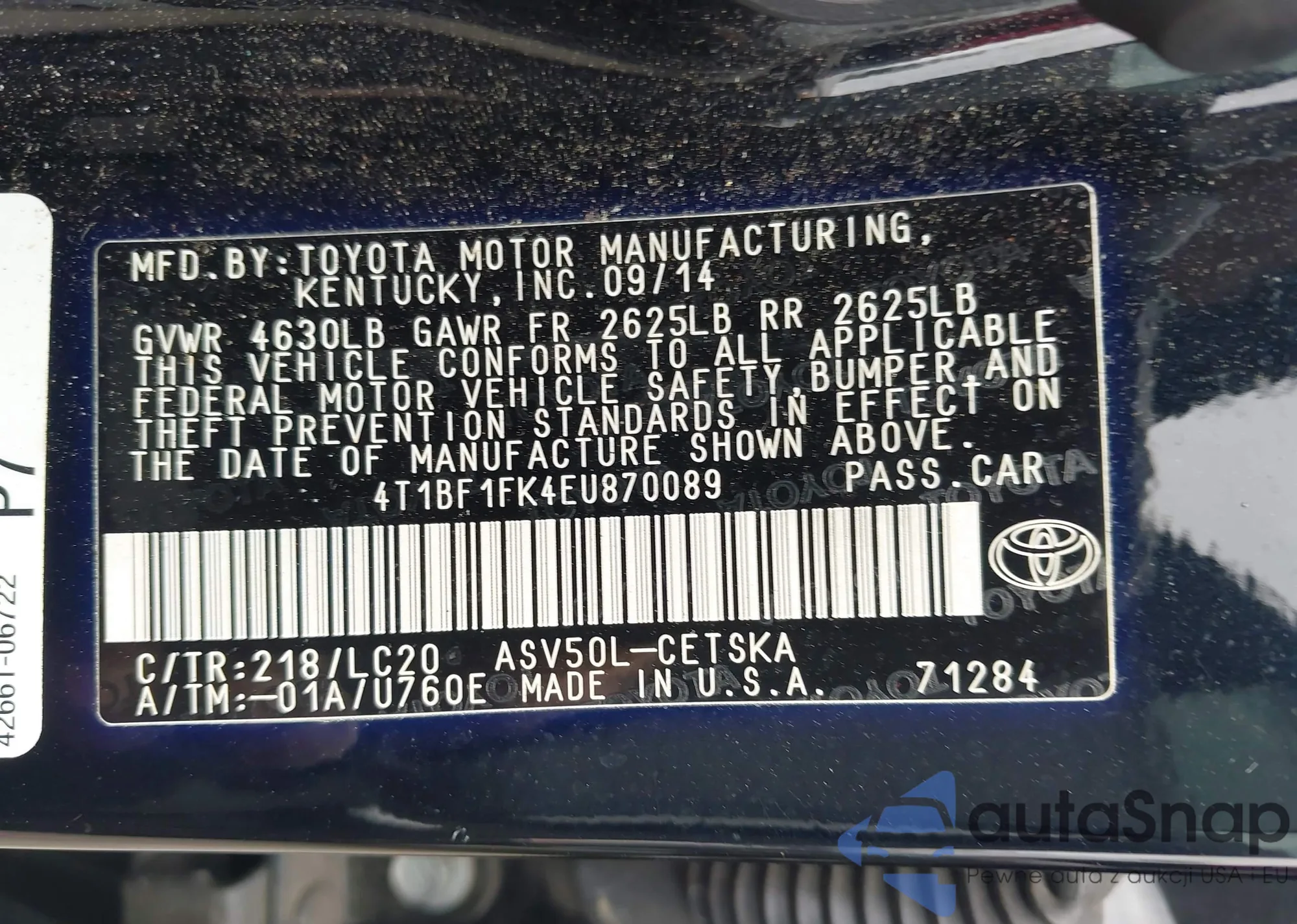 VIN: 4T1BF1FK4EU870089