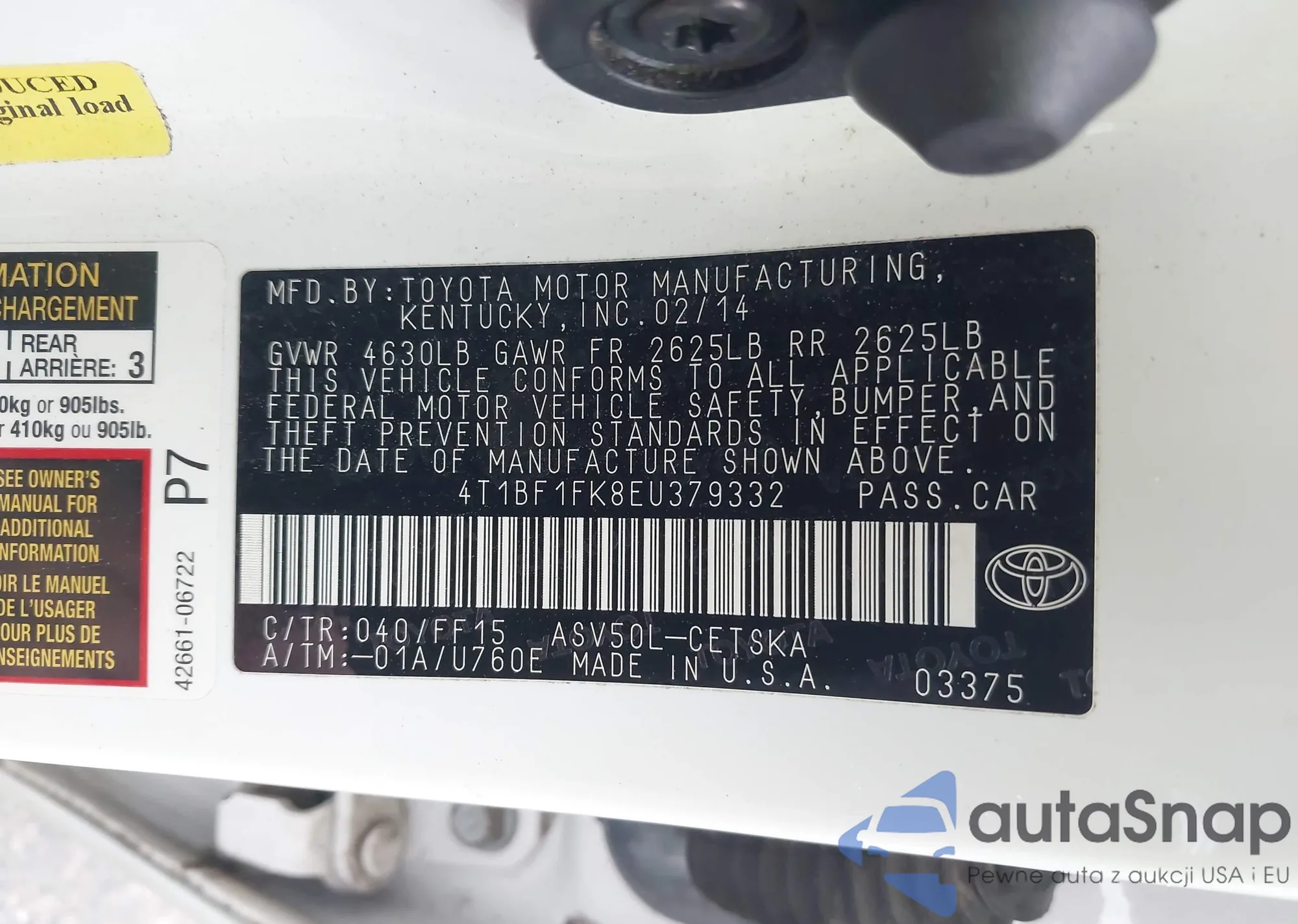 VIN: 4T1BF1FK8EU379332