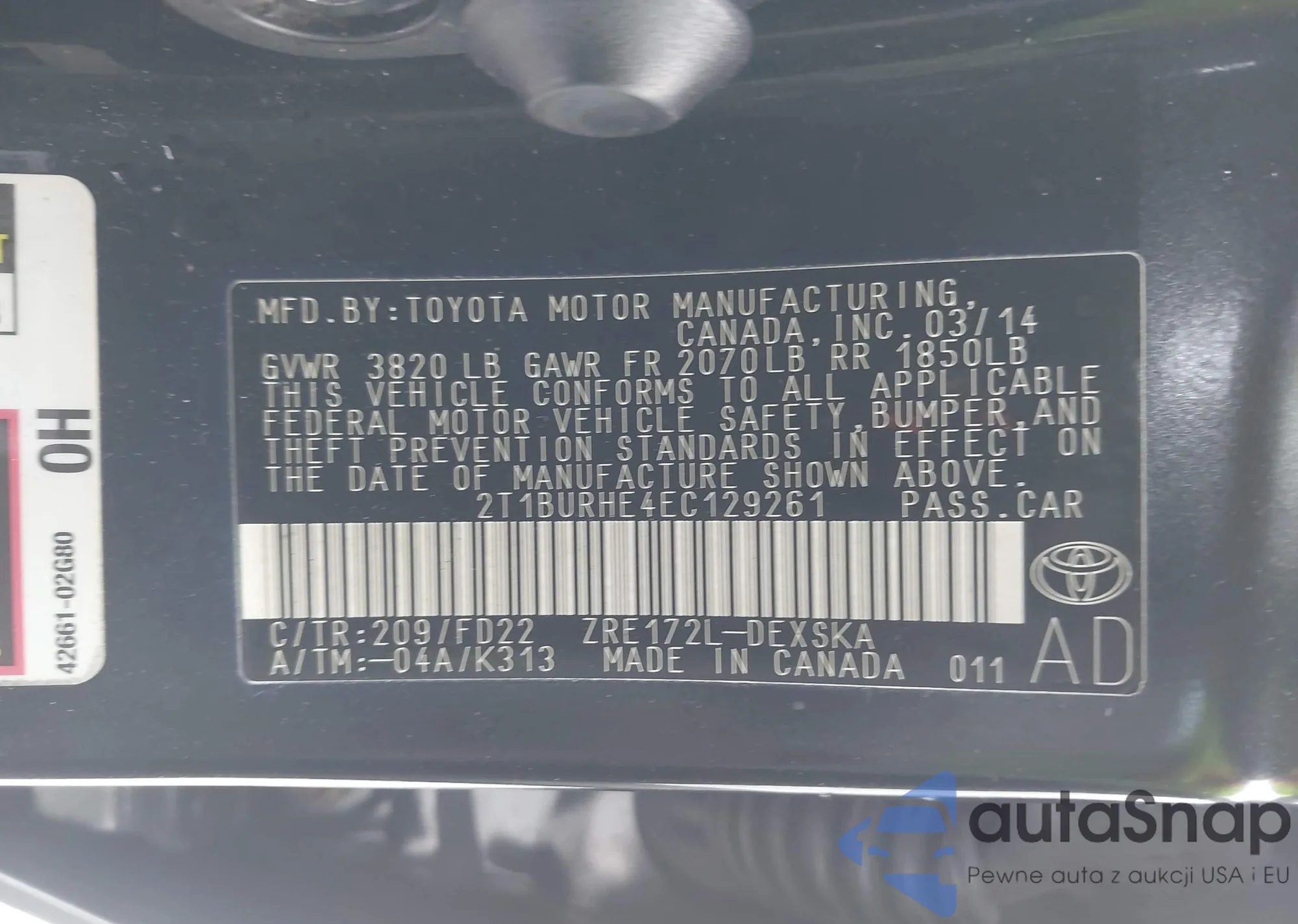 VIN: 2T1BURHE4EC129261