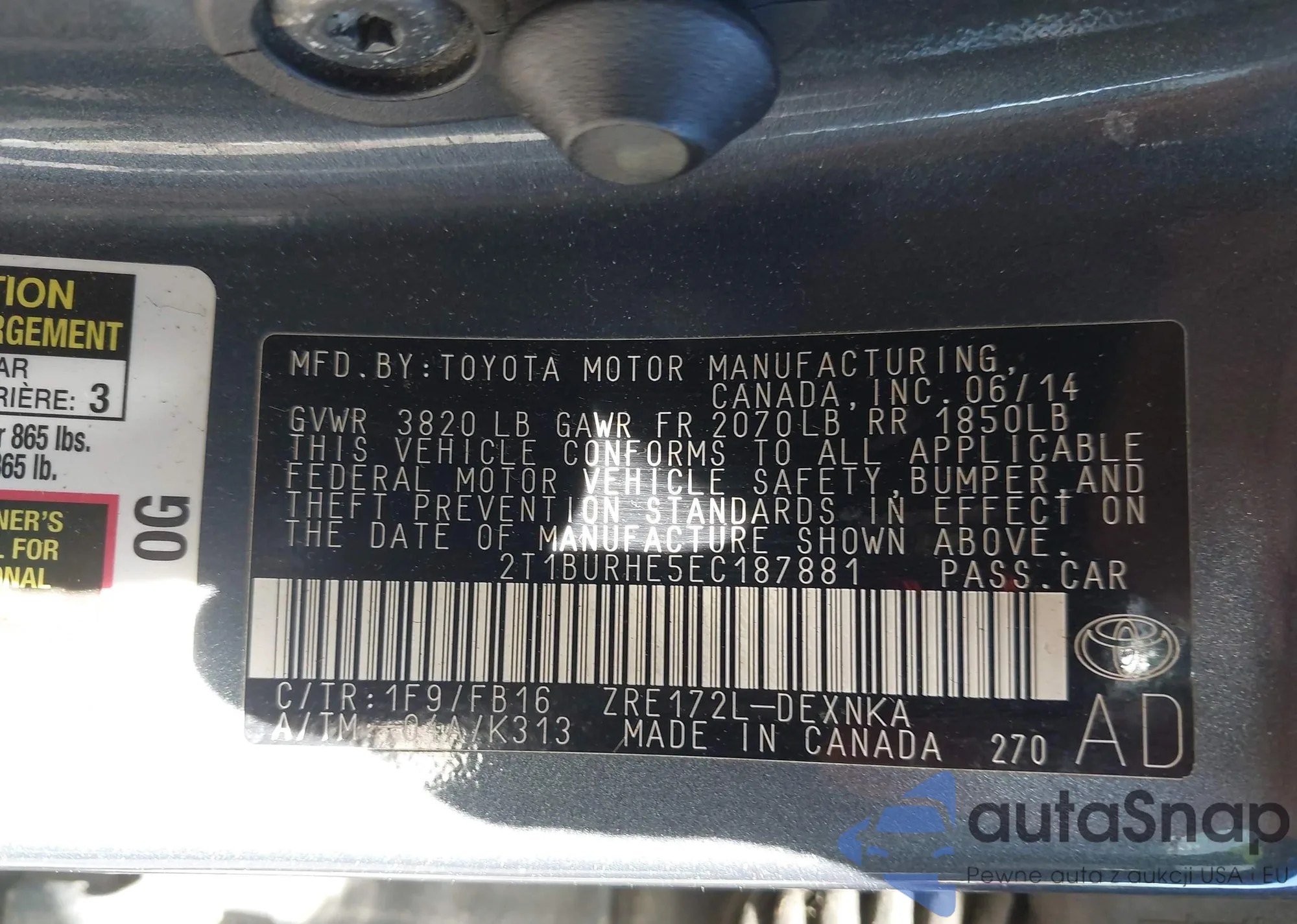 VIN: 2T1BURHE5EC187881