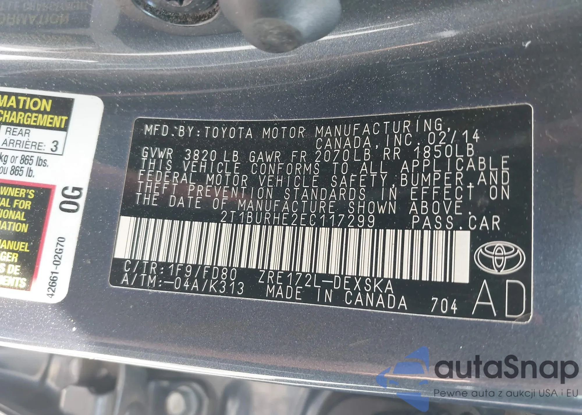 VIN: 2T1BURHE2EC117299