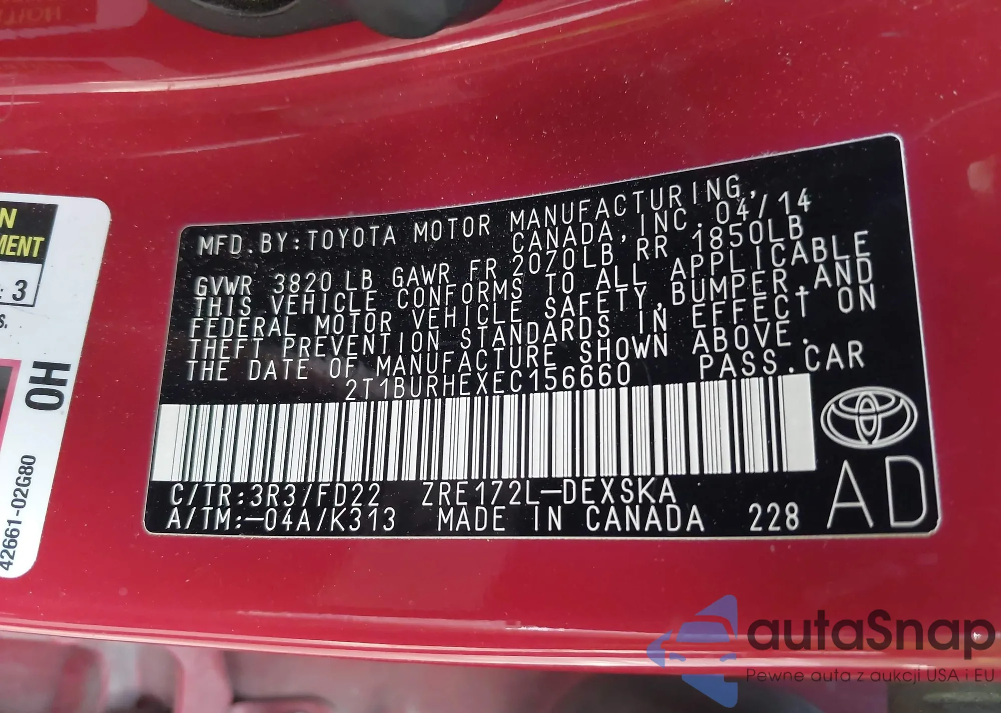 VIN: 2T1BURHEXEC156660