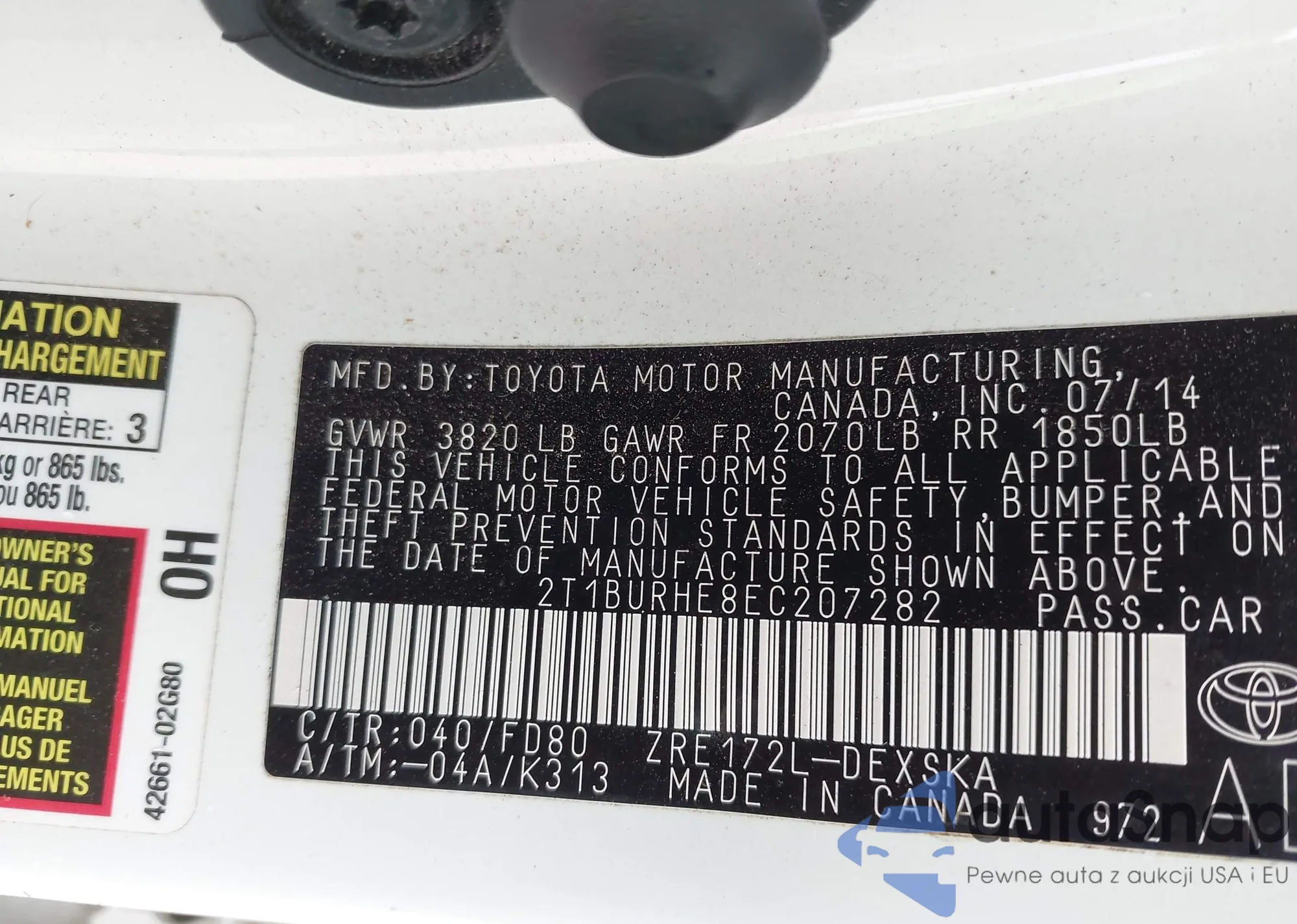 VIN: 2T1BURHE8EC207282