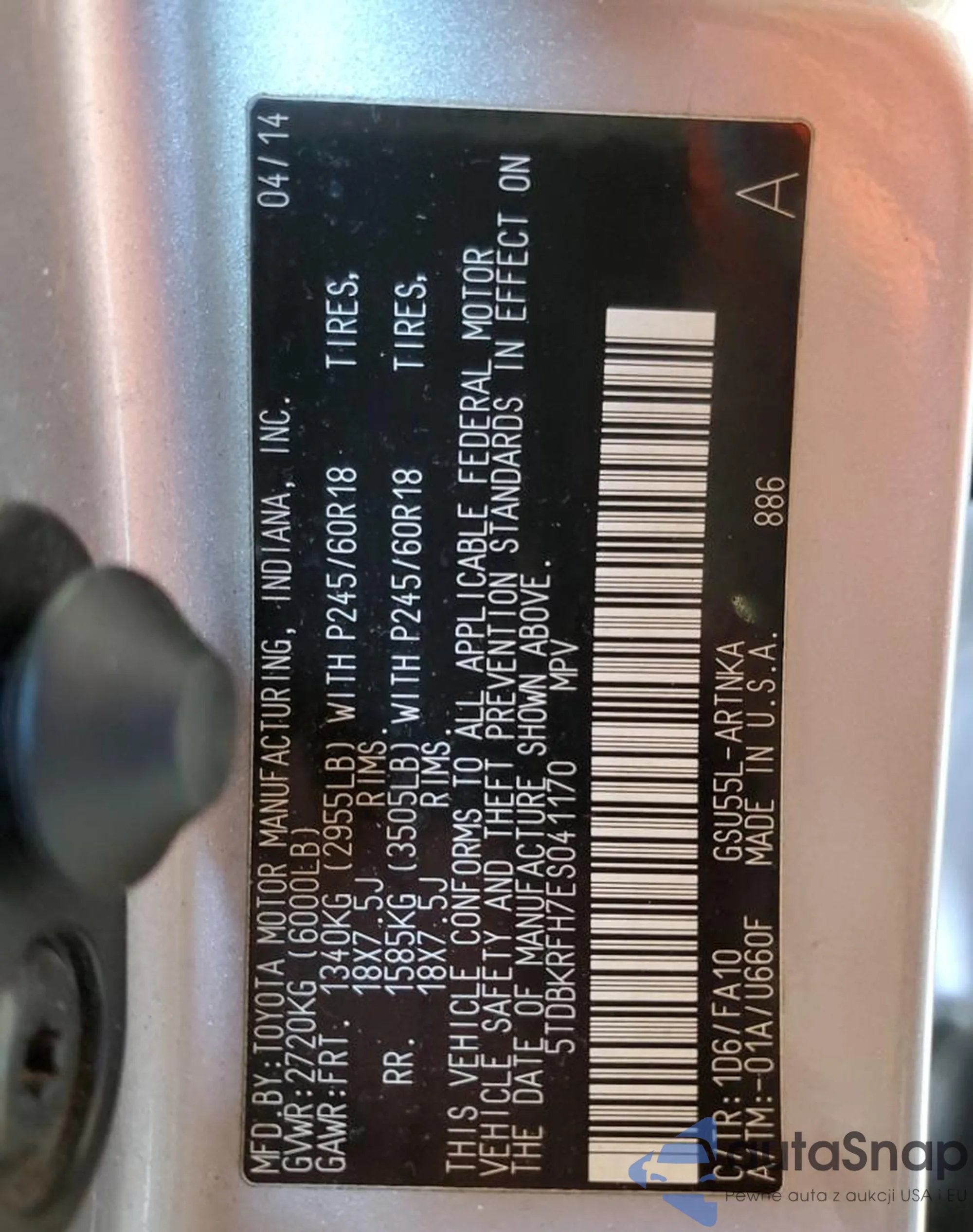 VIN: 5TDBKRFH7ES041170