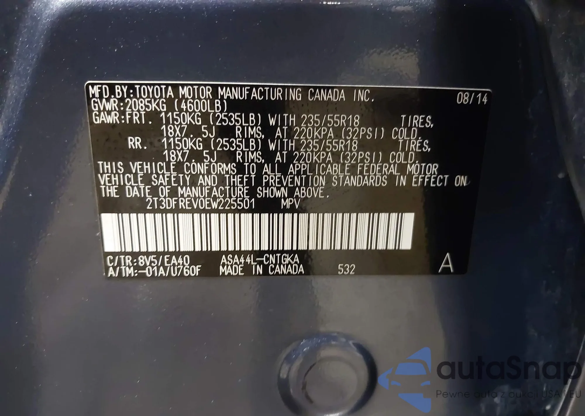 VIN: 2T3DFREV0EW225501