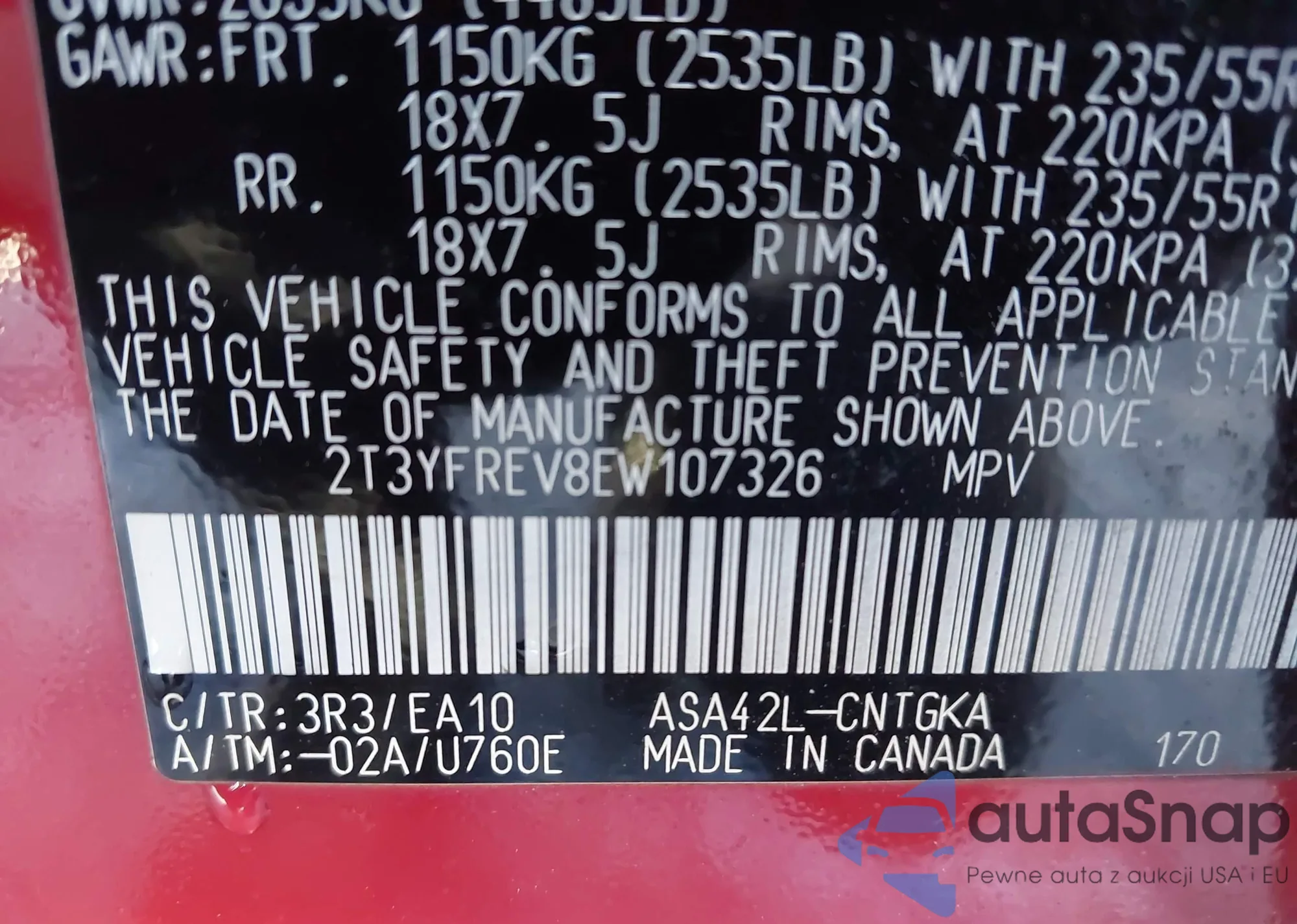 VIN: 2T3YFREV8EW107326