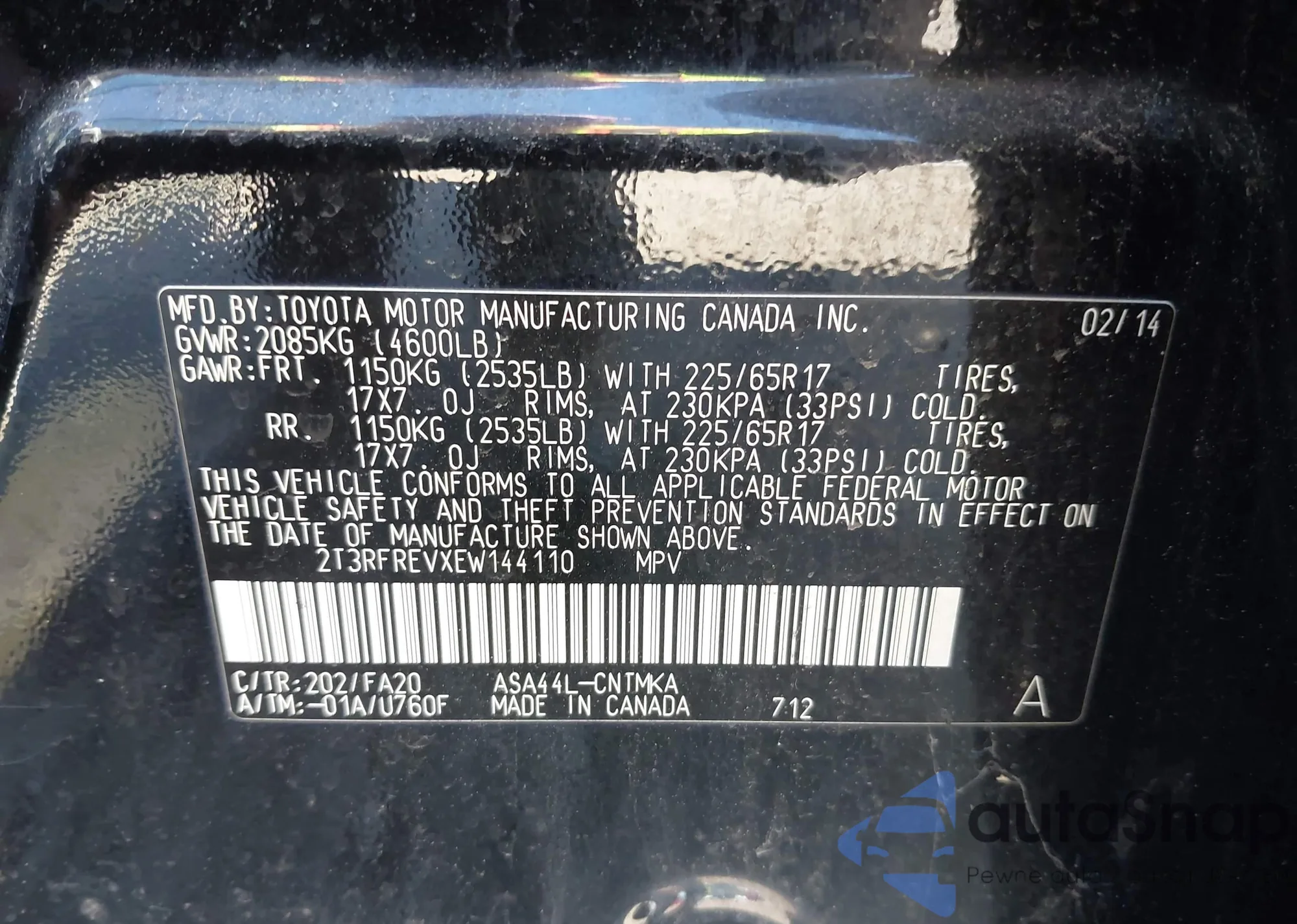 VIN: 2T3RFREVXEW144110