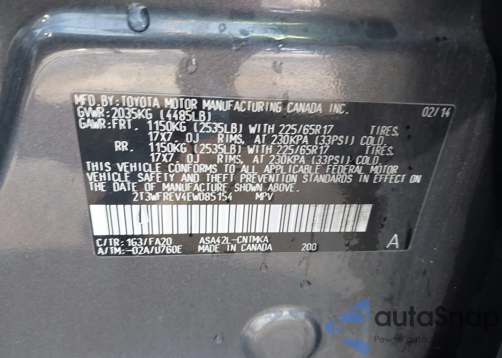 Автомобиль Toyota RAV 4 2014 (VIN 2T3WFREV4EW085154) ранее не участвовал в торгах. Документы чистые, пробег соответствует или ниже среднего по рынку. Продаётся страховой компанией — рекомендуем покупку. Доставка в порт займет около 6–8 недель.