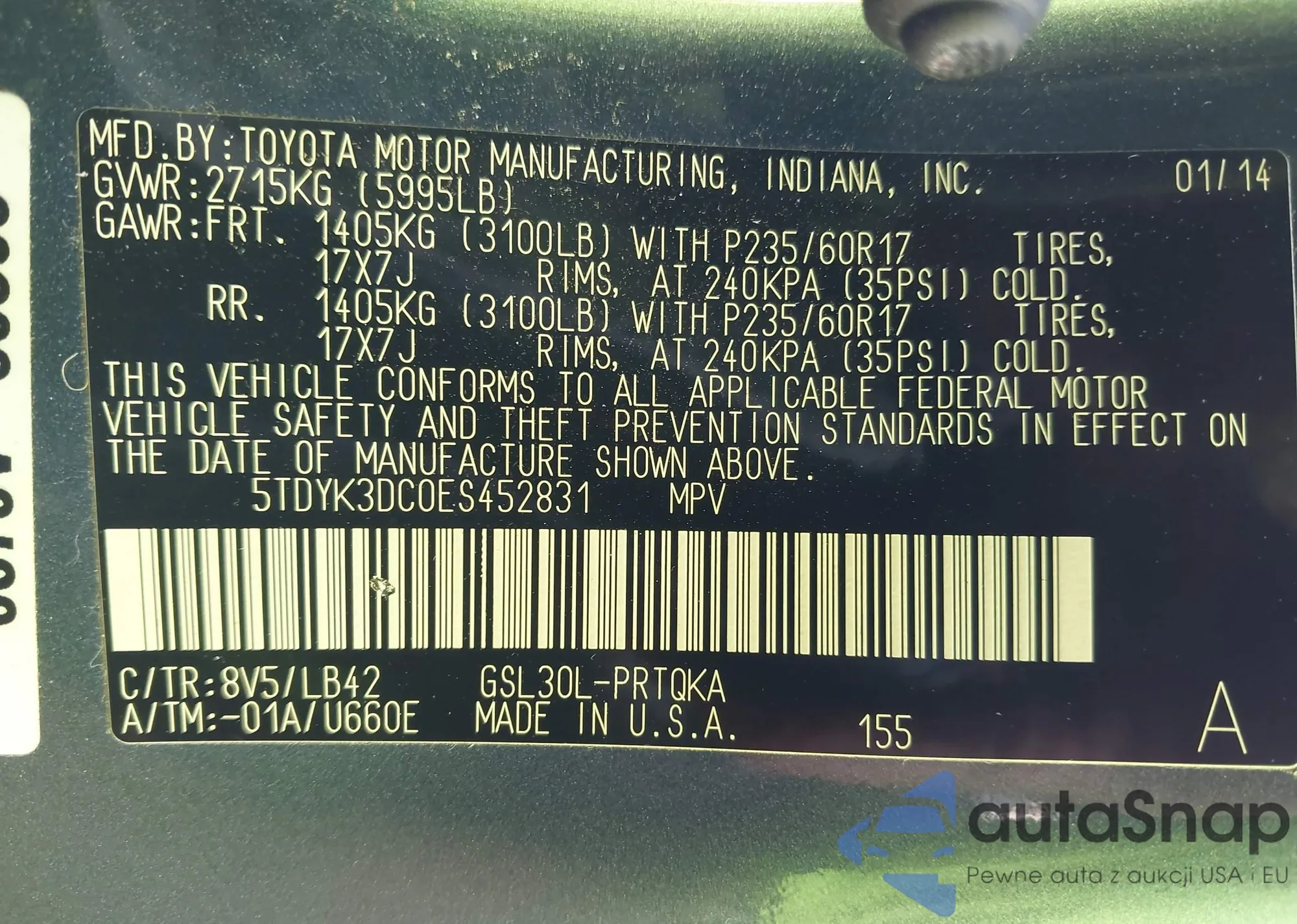 VIN: 5TDYK3DC0ES452831