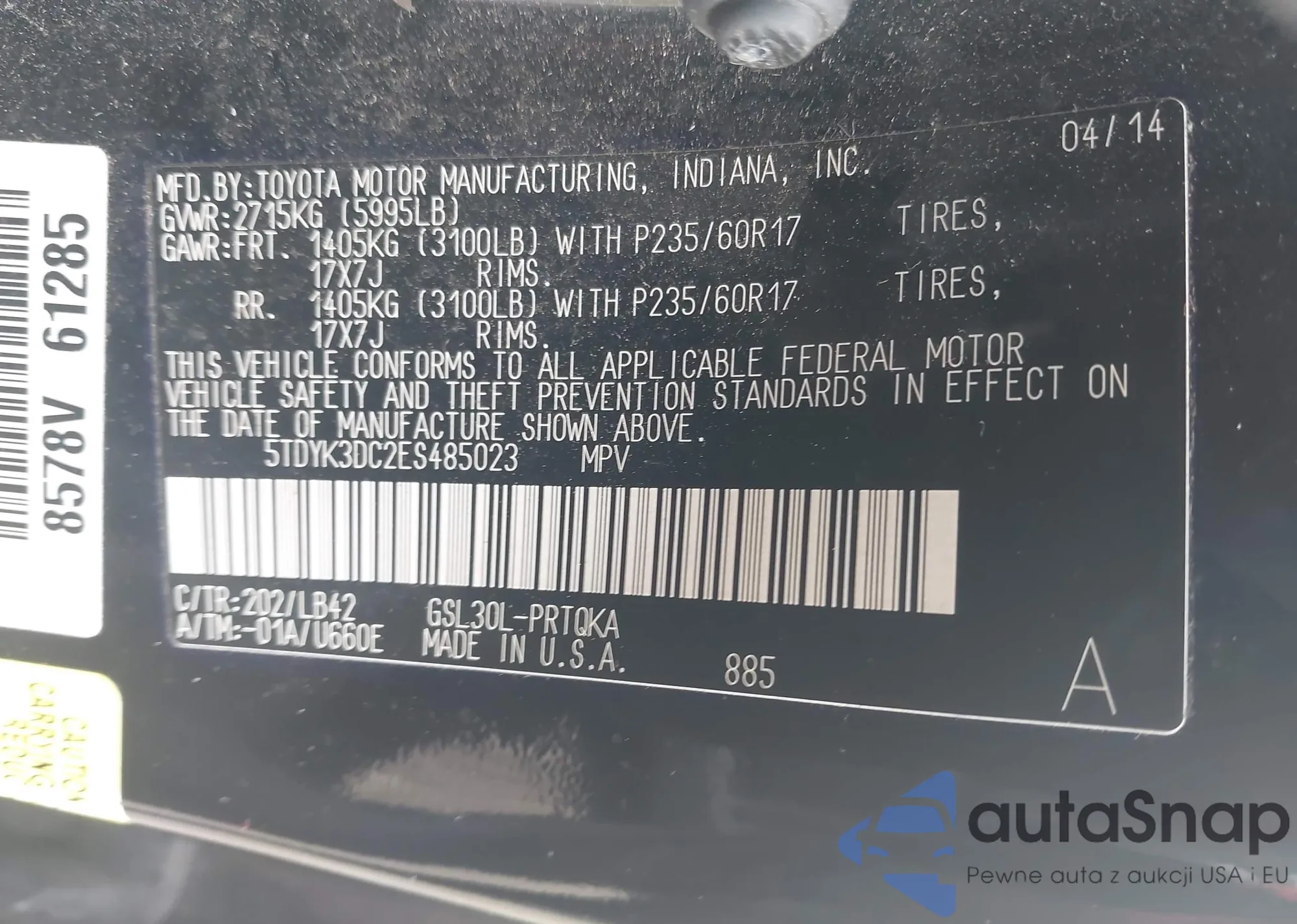 VIN: 5TDYK3DC2ES485023