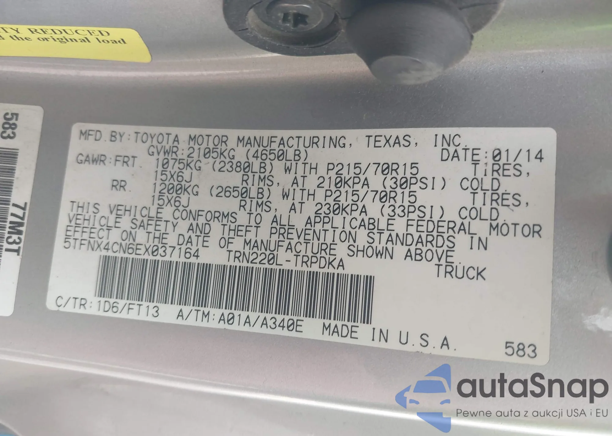 • VIN: 5TFNX4CN6EX037164
