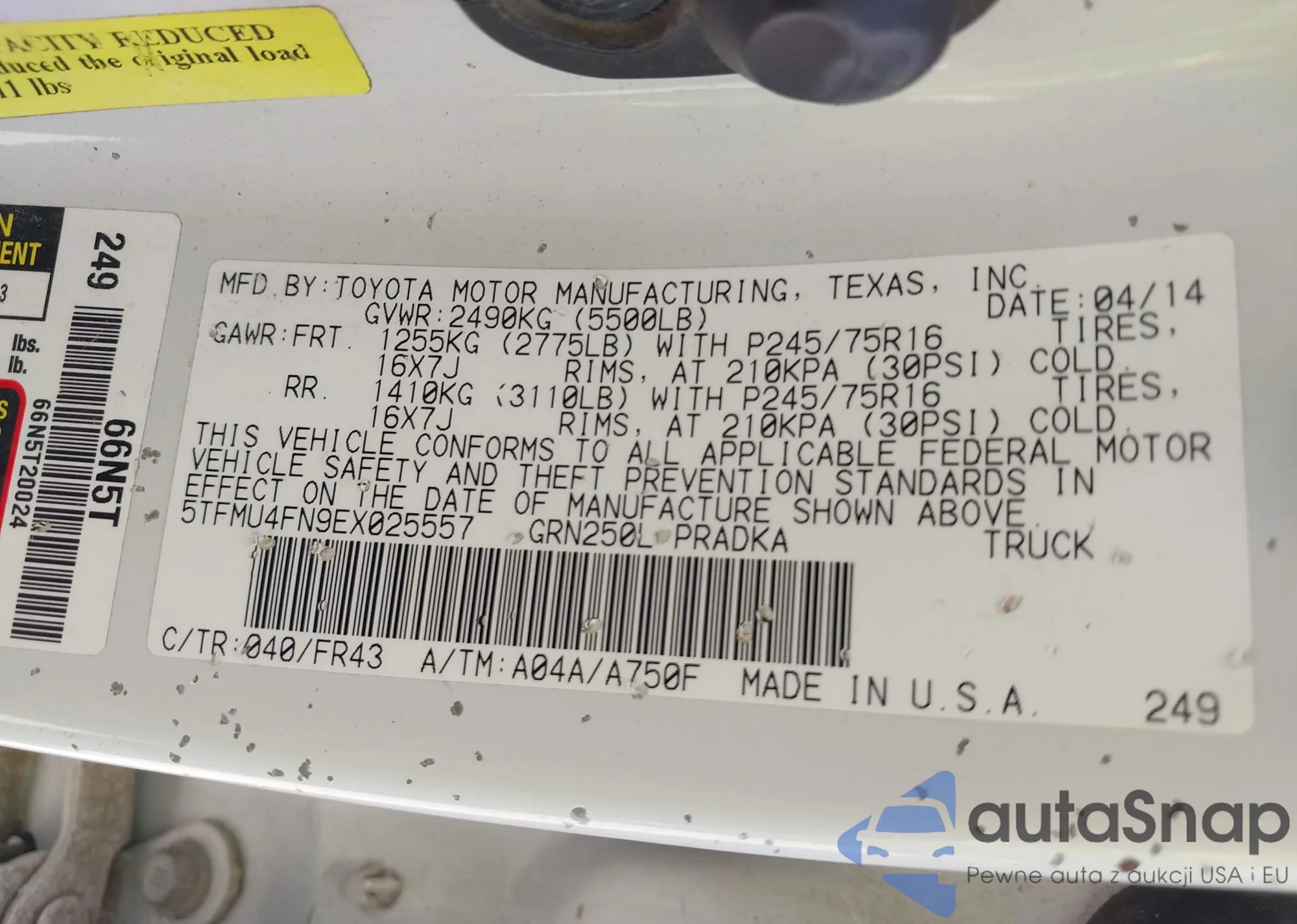 VIN: 5TFMU4FN9EX025557