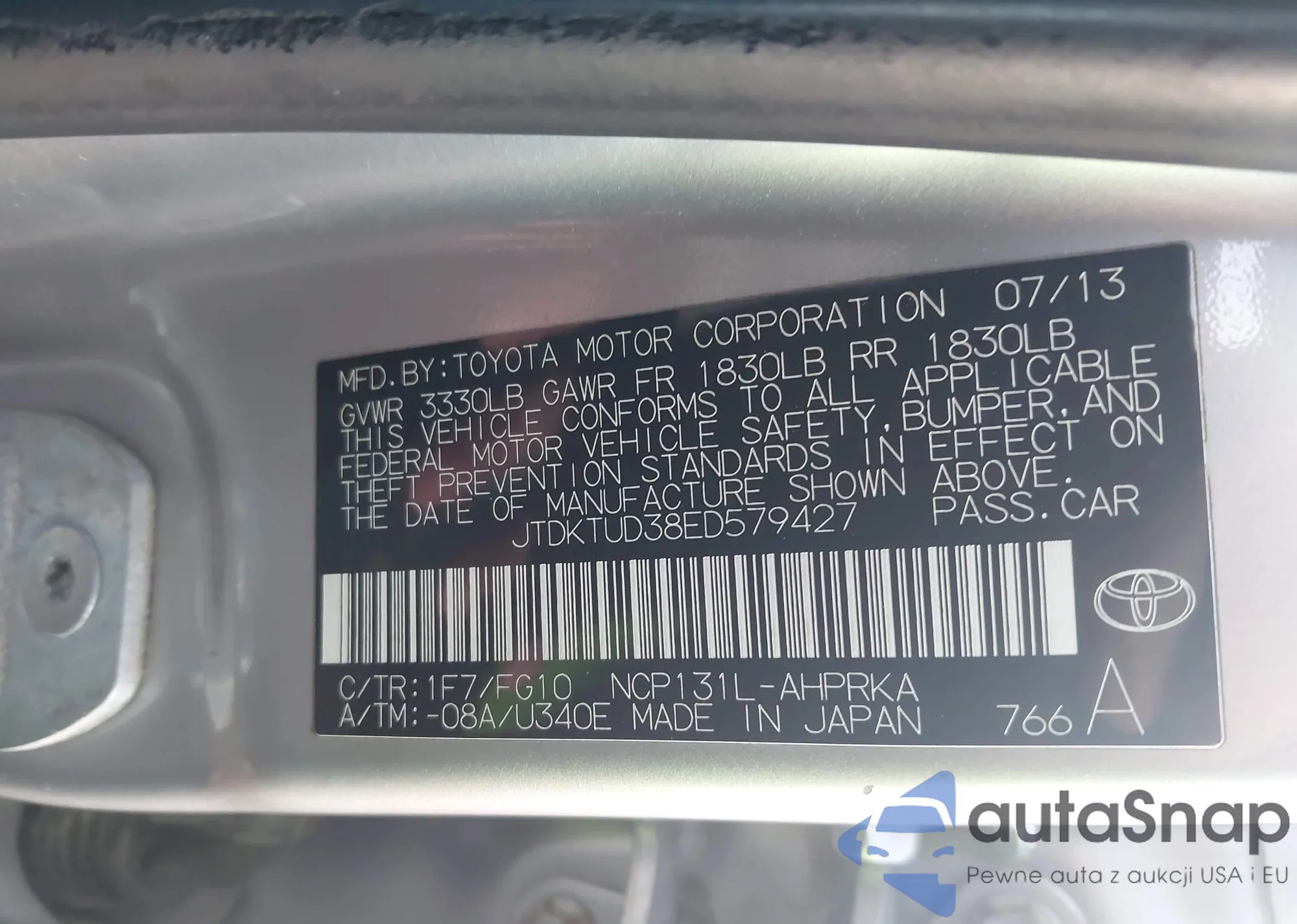 • VIN: JTDKTUD38ED579427