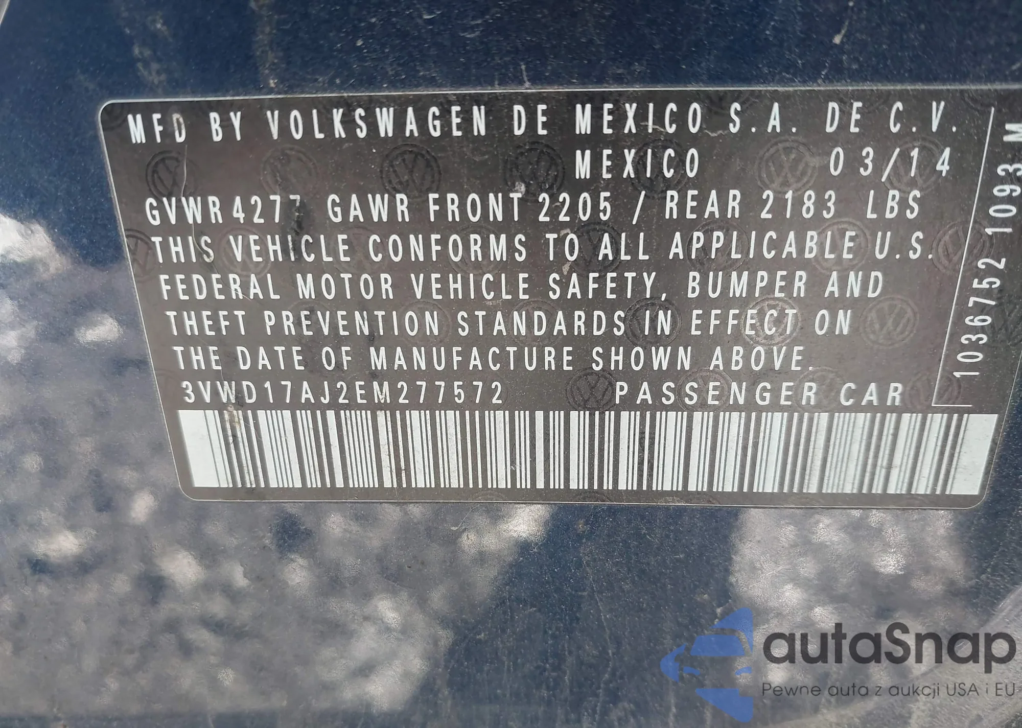 VIN: 3VWD17AJ2EM277572