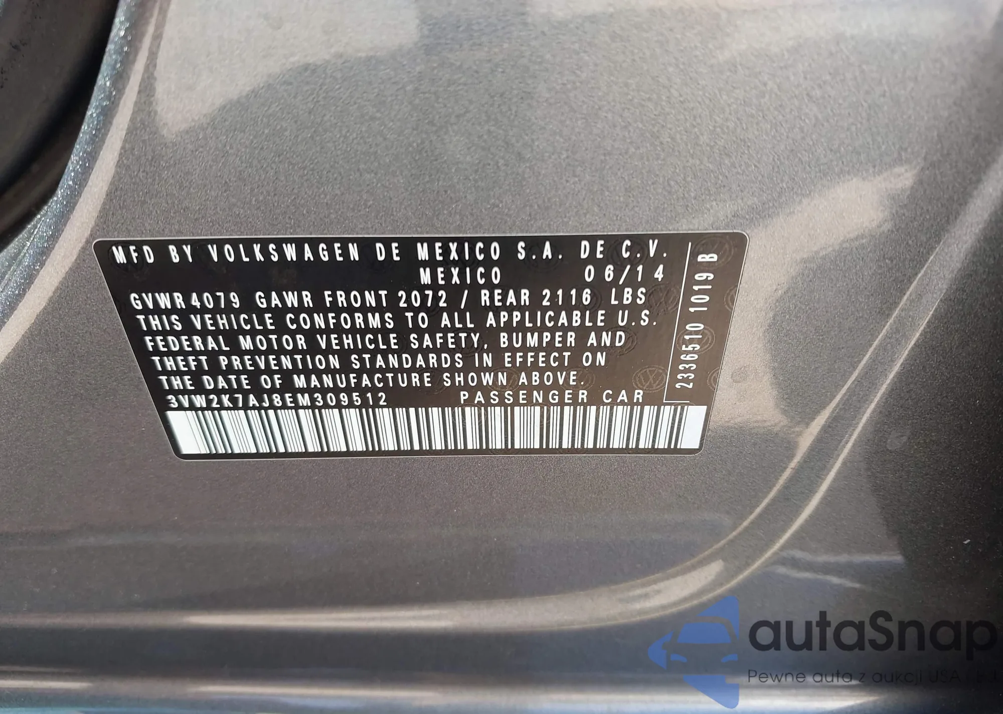 Автомобиль Volkswagen Jetta 2014 (VIN 3VW2K7AJ8EM309512) ранее не участвовал в торгах. Документы чистые, пробег соответствует или ниже среднего по рынку. Продаётся страховой компанией — рекомендуем покупку. Доставка в порт займет около 6–8 недель.