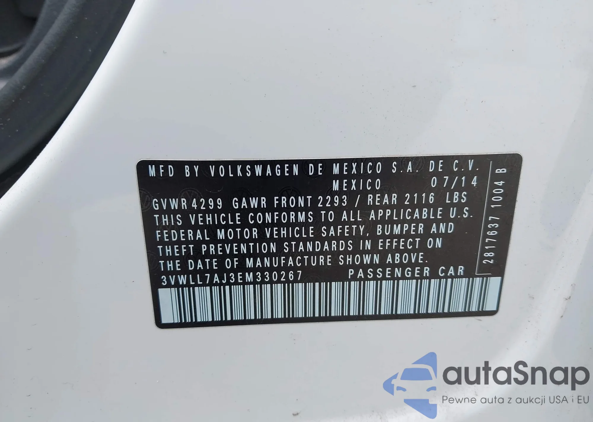 • VIN: 3VWLL7AJ3EM330267