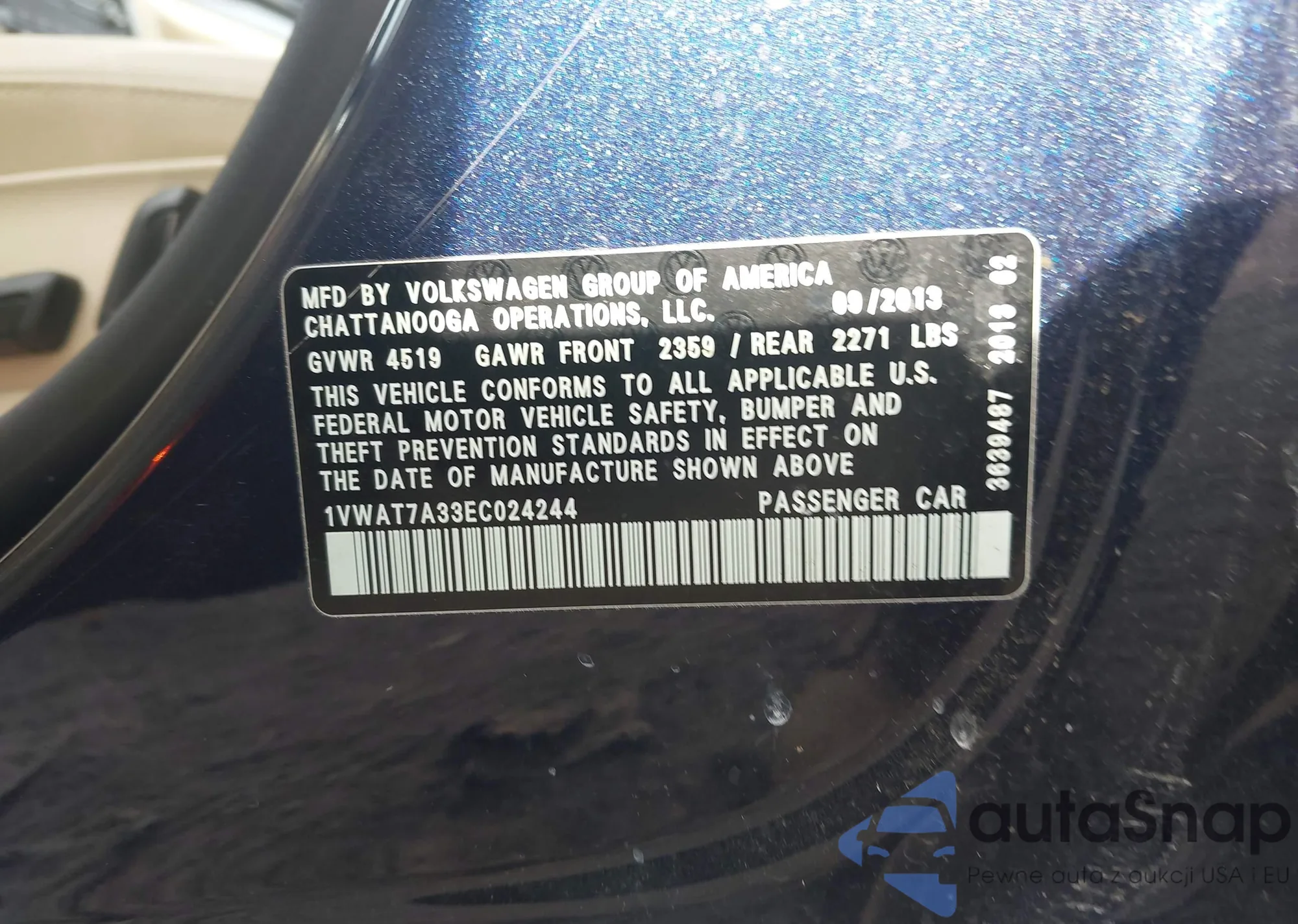 Автомобиль Volkswagen Passat 2014 (VIN 1VWAT7A33EC024244) ранее не участвовал в торгах. Документы чистые, пробег соответствует или ниже среднего по рынку. Продаётся страховой компанией — рекомендуем покупку. Доставка в порт займет около 6–8 недель.