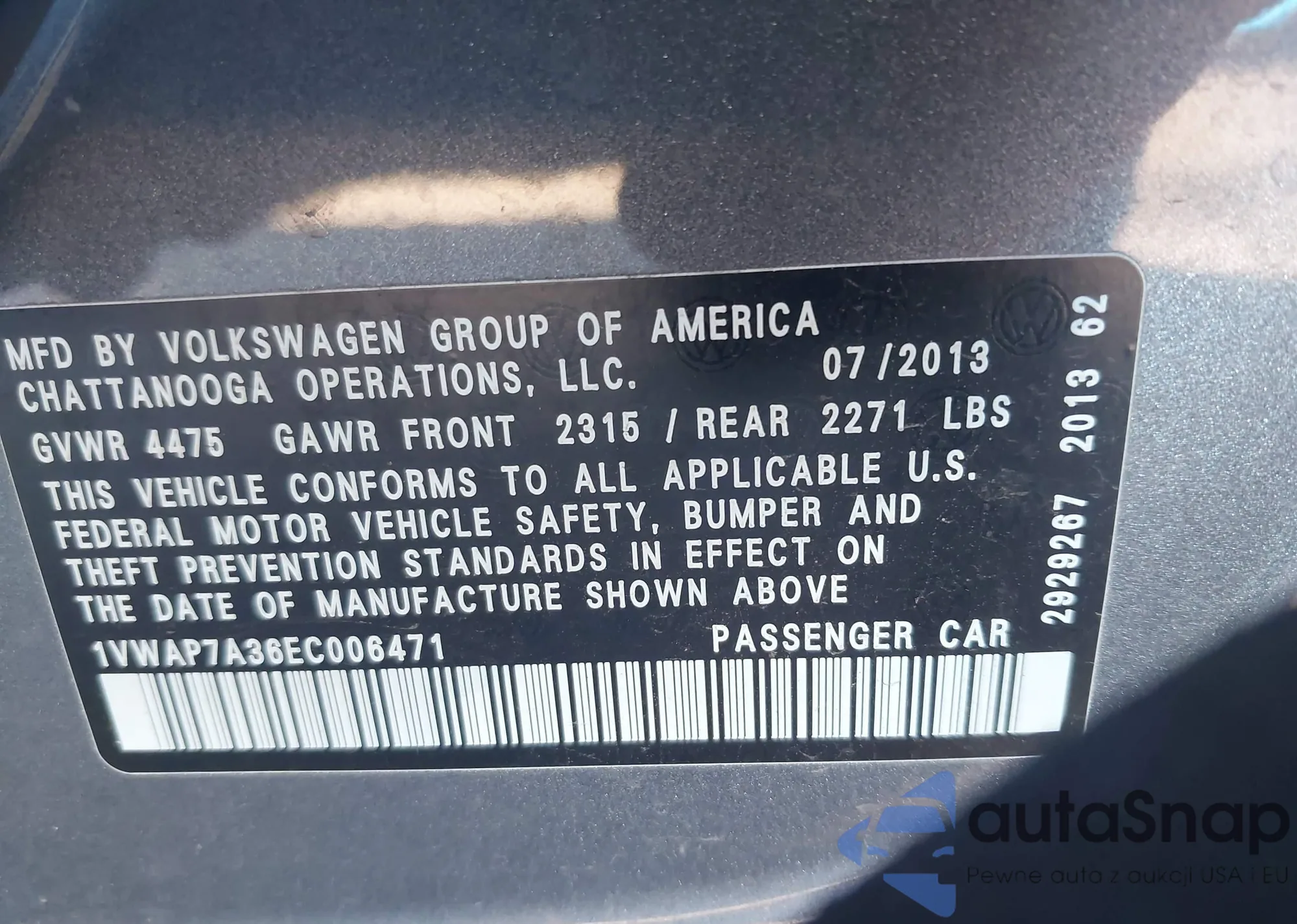 VIN: 1VWAP7A36EC006471