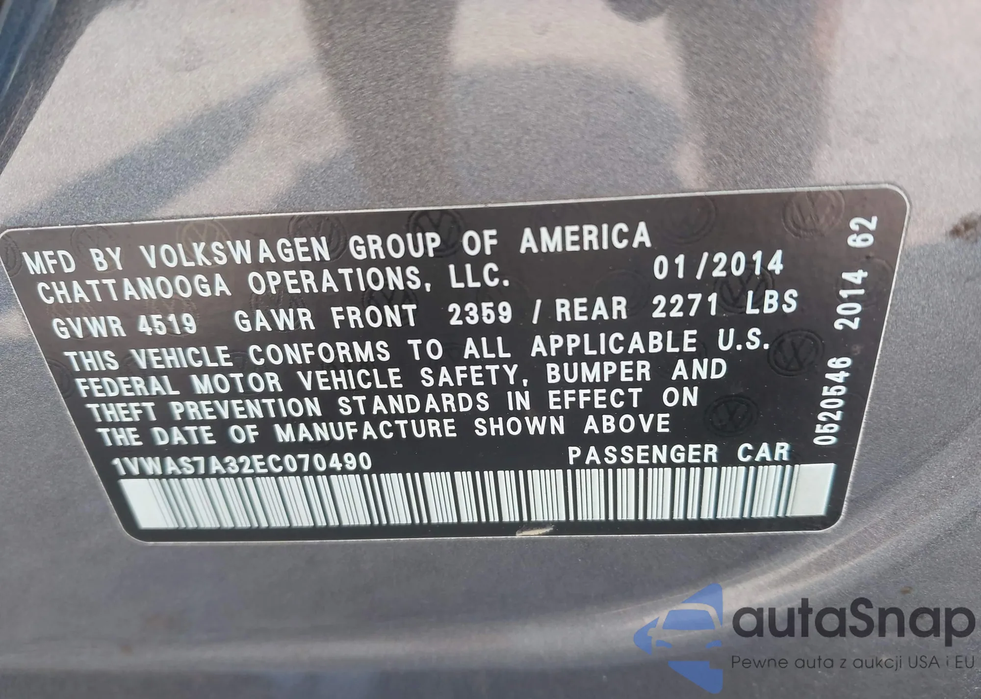 VIN: 1VWAS7A32EC070490