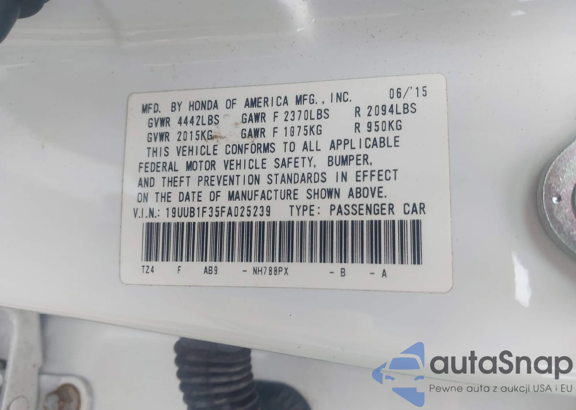 VIN: 19UUB1F35FA025239