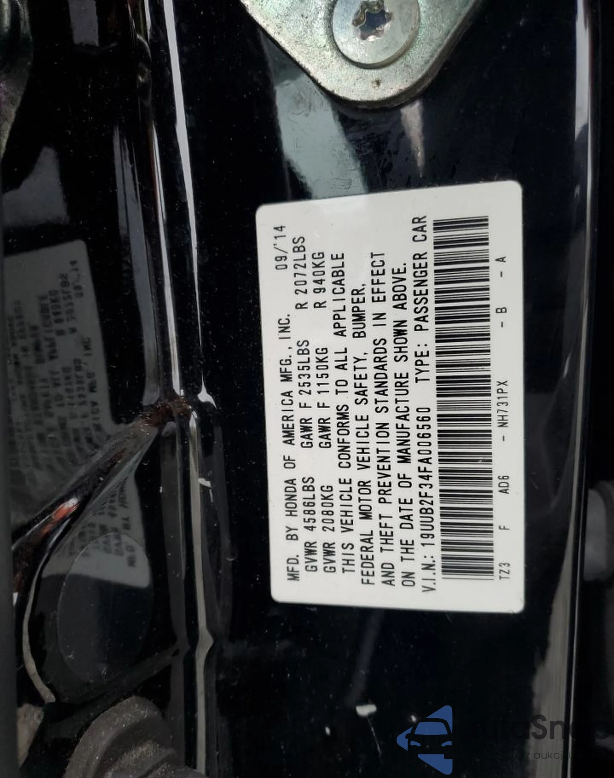 VIN: 19UUB2F34FA006560