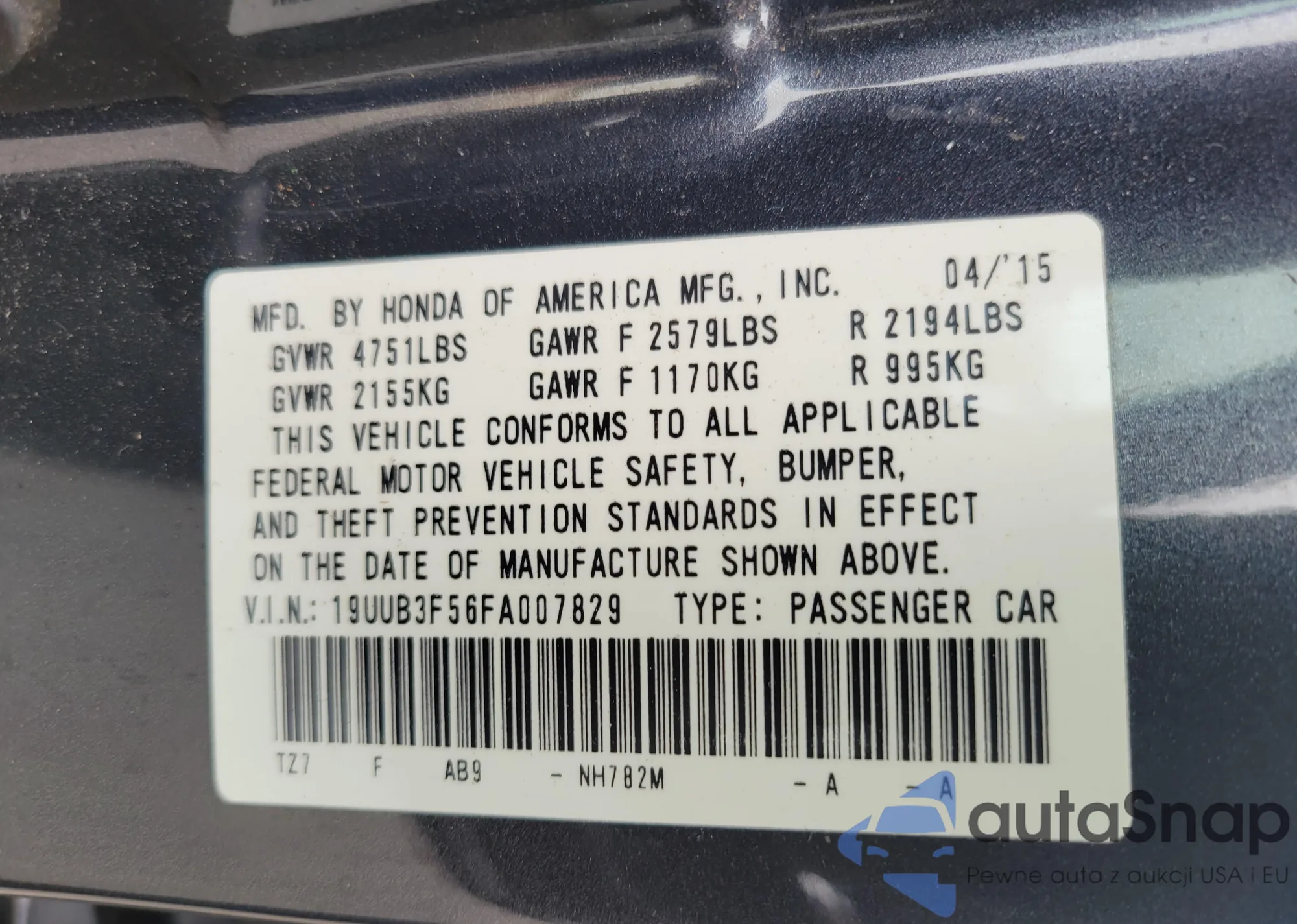 VIN: 19UUB3F56FA007829
