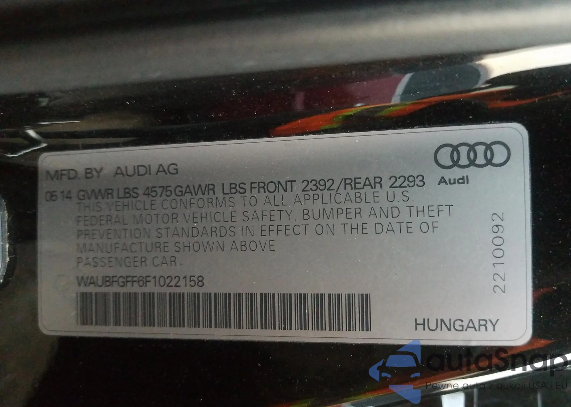 VIN: WAUBFGFF6F1022158