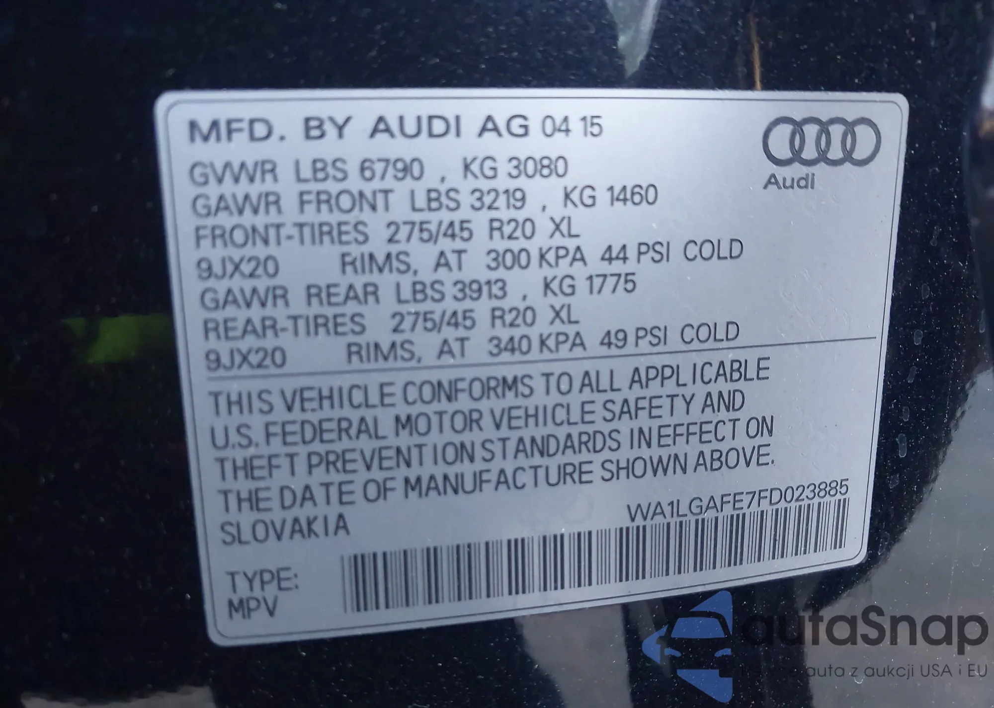 • VIN: WA1LGAFE7FD023885