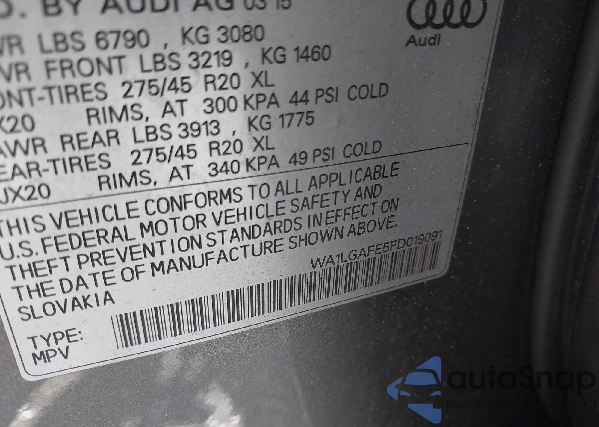 • VIN: WA1LGAFE5FD019091