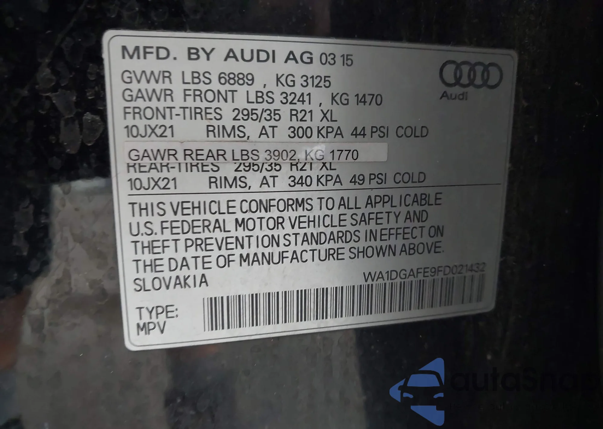 • VIN: WA1DGAFE9FD021432