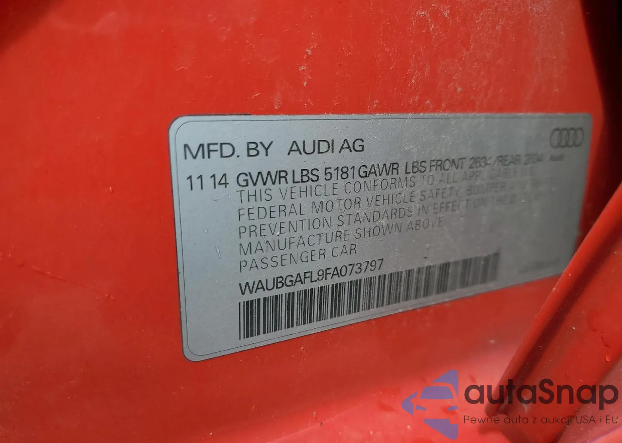 VIN: WAUBGAFL9FA073797