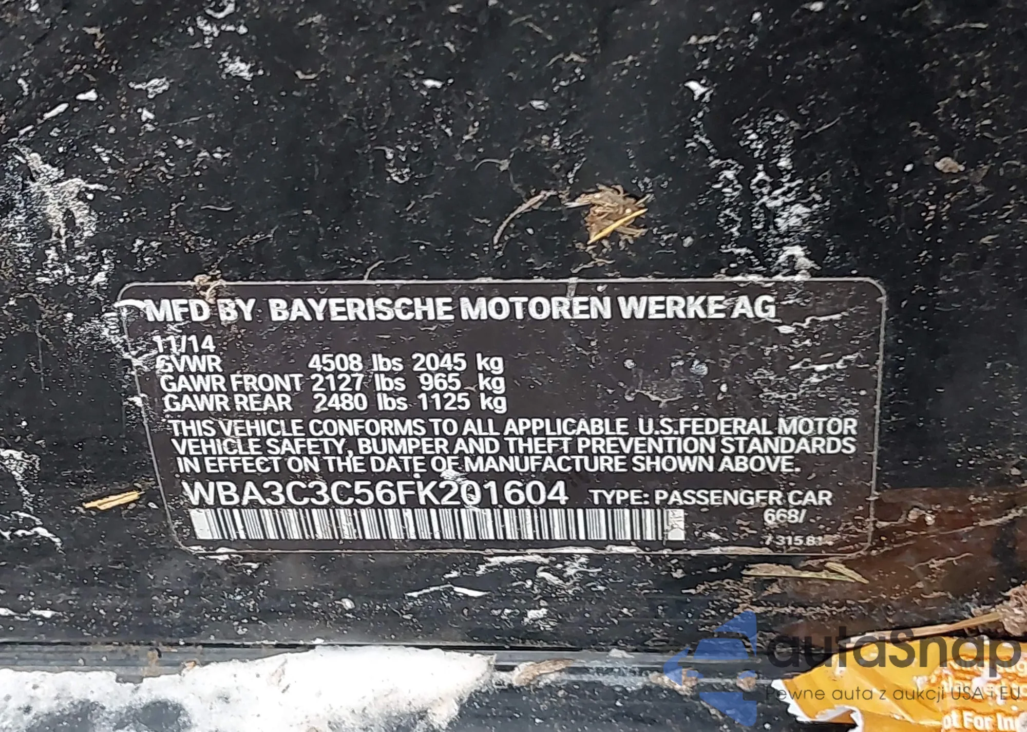 VIN: WBA3C3C56FK201604