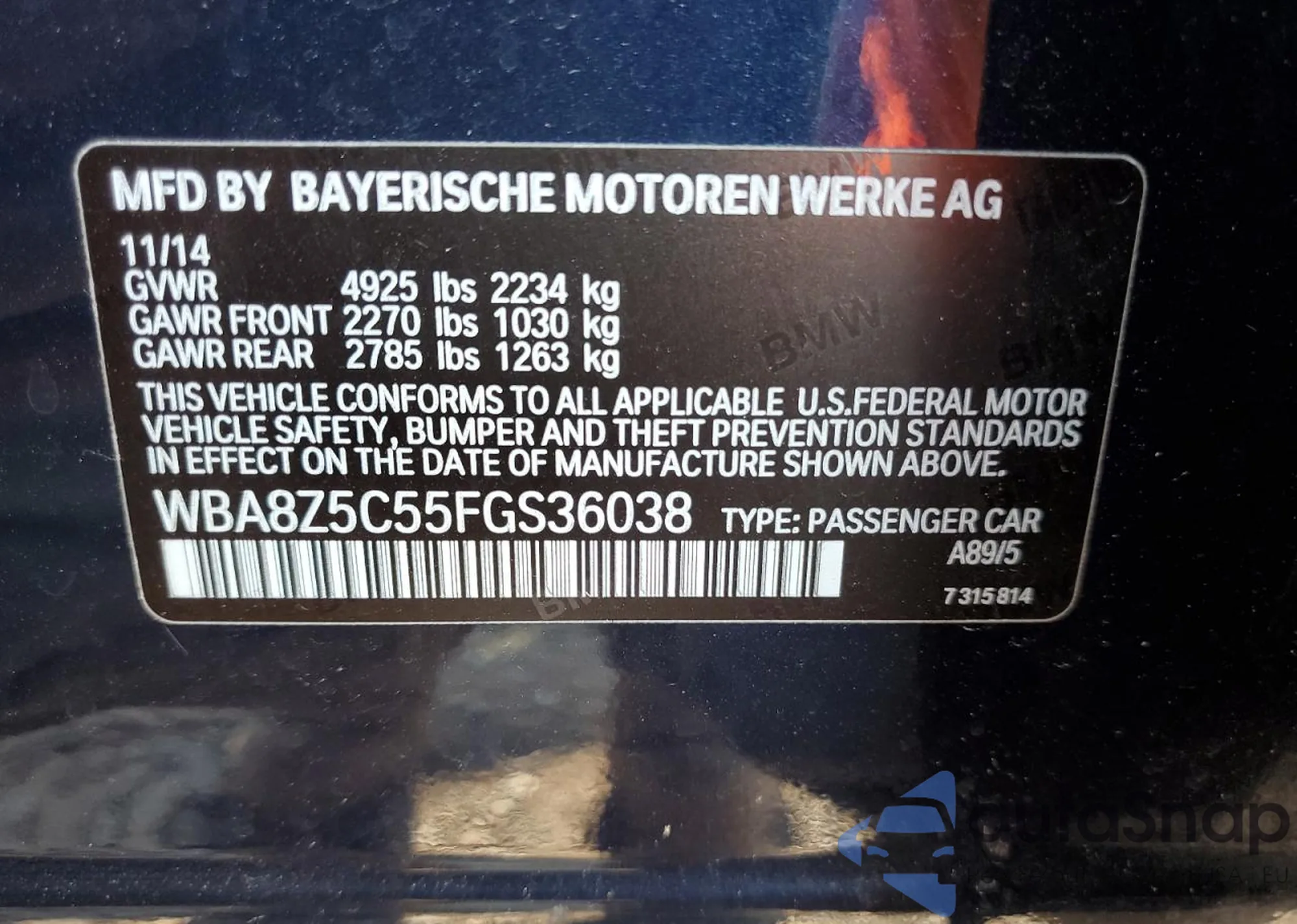VIN: WBA8Z5C55FGS36038