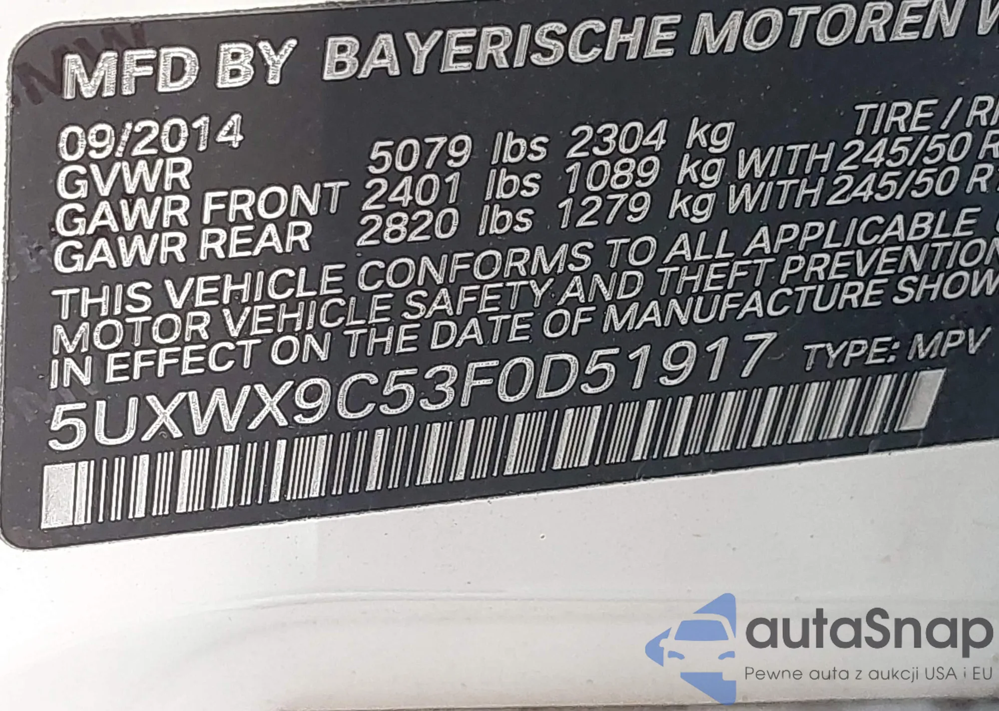 VIN: 5UXWX9C53F0D51917