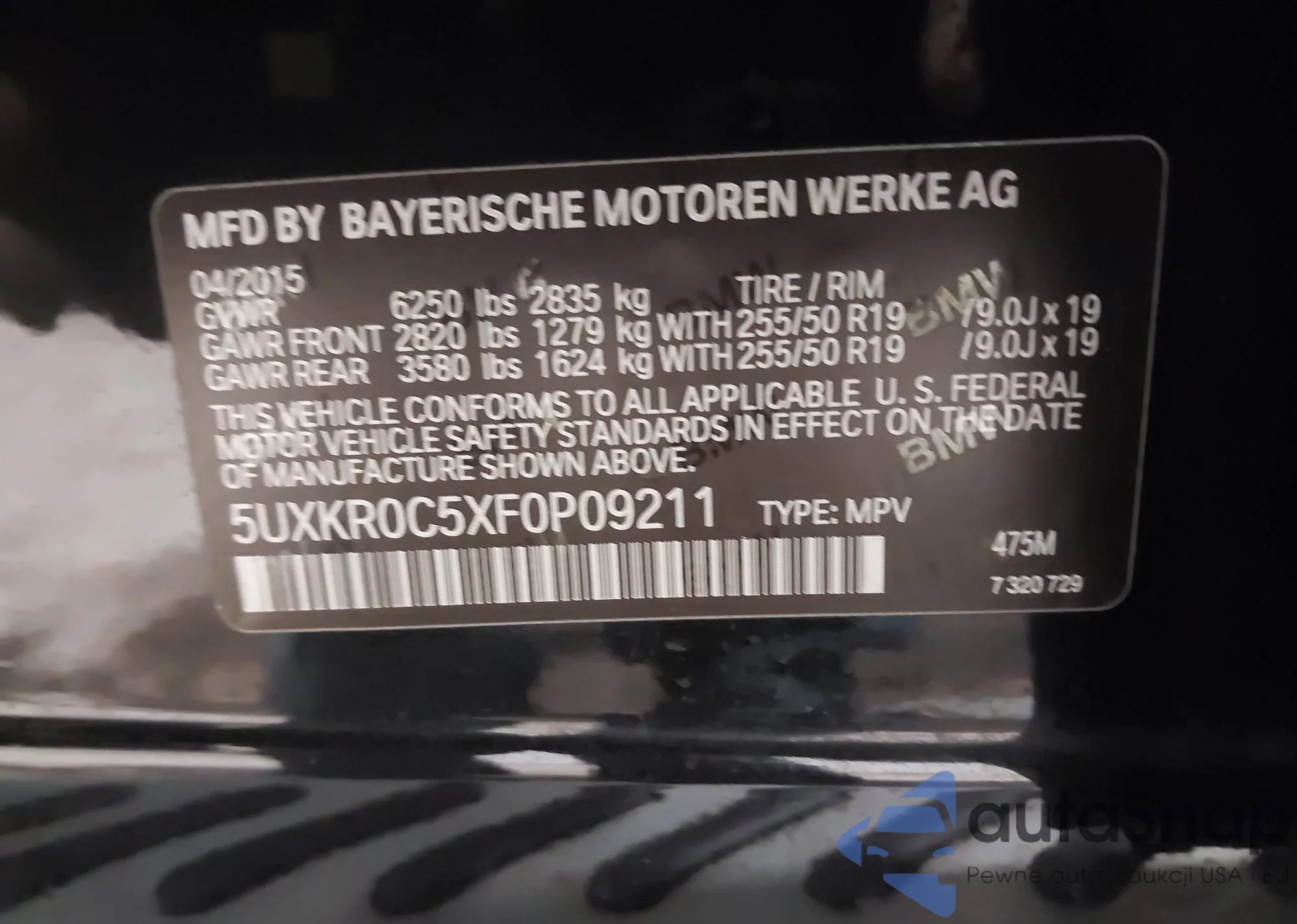 Автомобиль BMW X5 2015 (VIN 5UXKR0C5XF0P09211) ранее не участвовал в торгах. Документы чистые, пробег соответствует или ниже среднего по рынку. Продаётся страховой компанией — рекомендуем покупку. Доставка в порт займет около 6–8 недель.