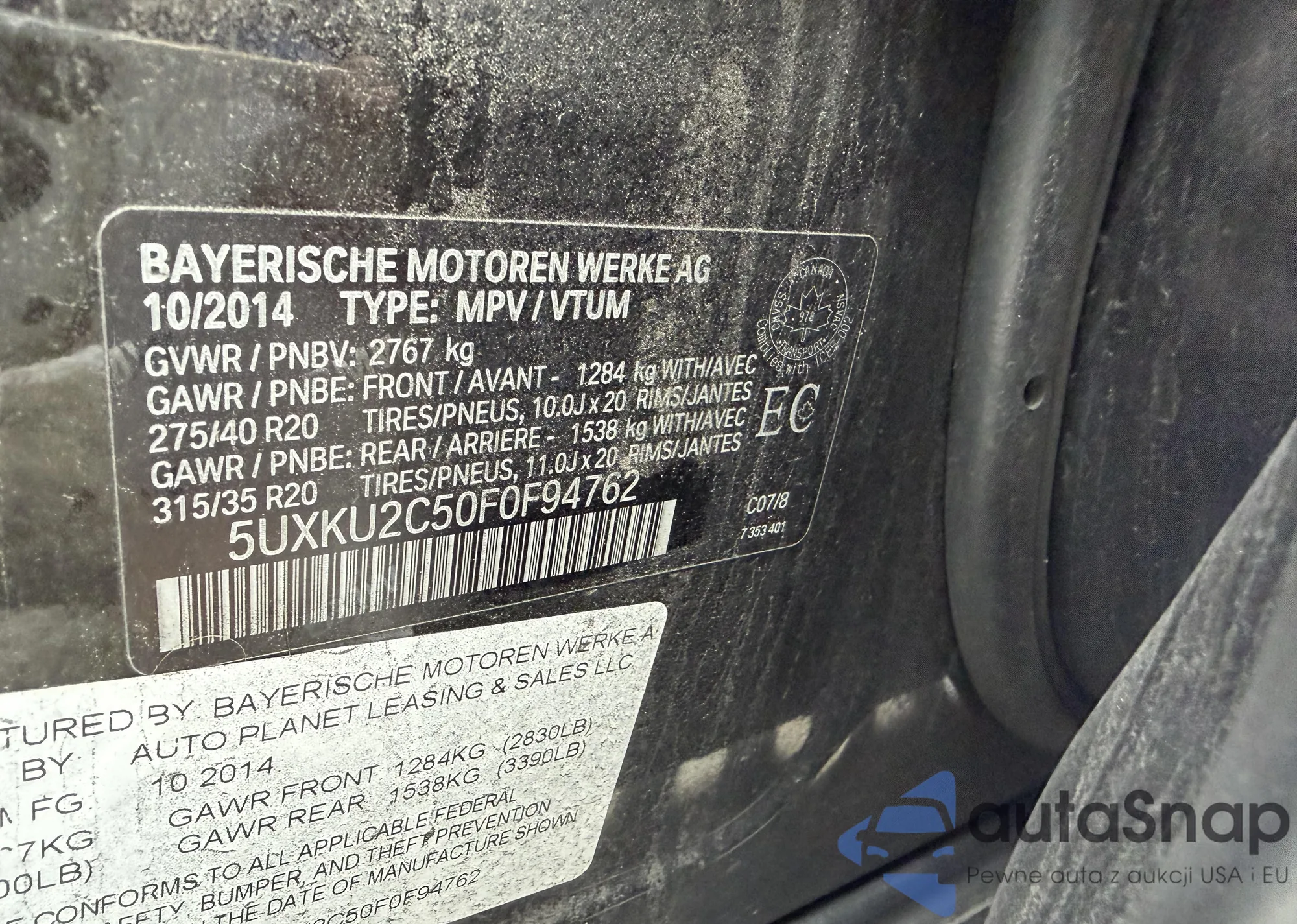 VIN: 5UXKU2C50F0F94762