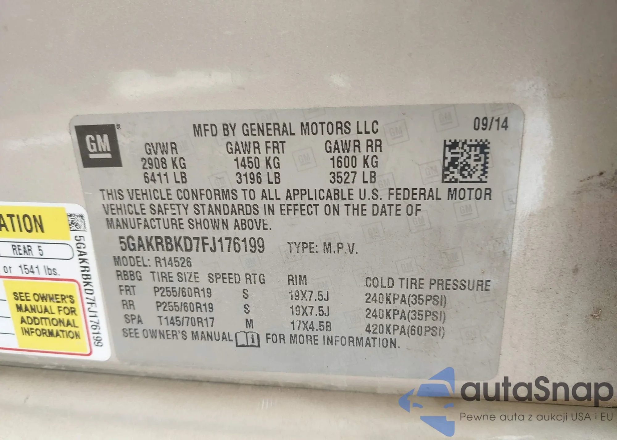 Автомобиль Buick Enclave 2015 (VIN 5GAKRBKD7FJ176199) ранее не участвовал в торгах. Документы чистые, пробег соответствует или ниже среднего по рынку. Продаётся страховой компанией — рекомендуем покупку. Доставка в порт займет около 6–8 недель.