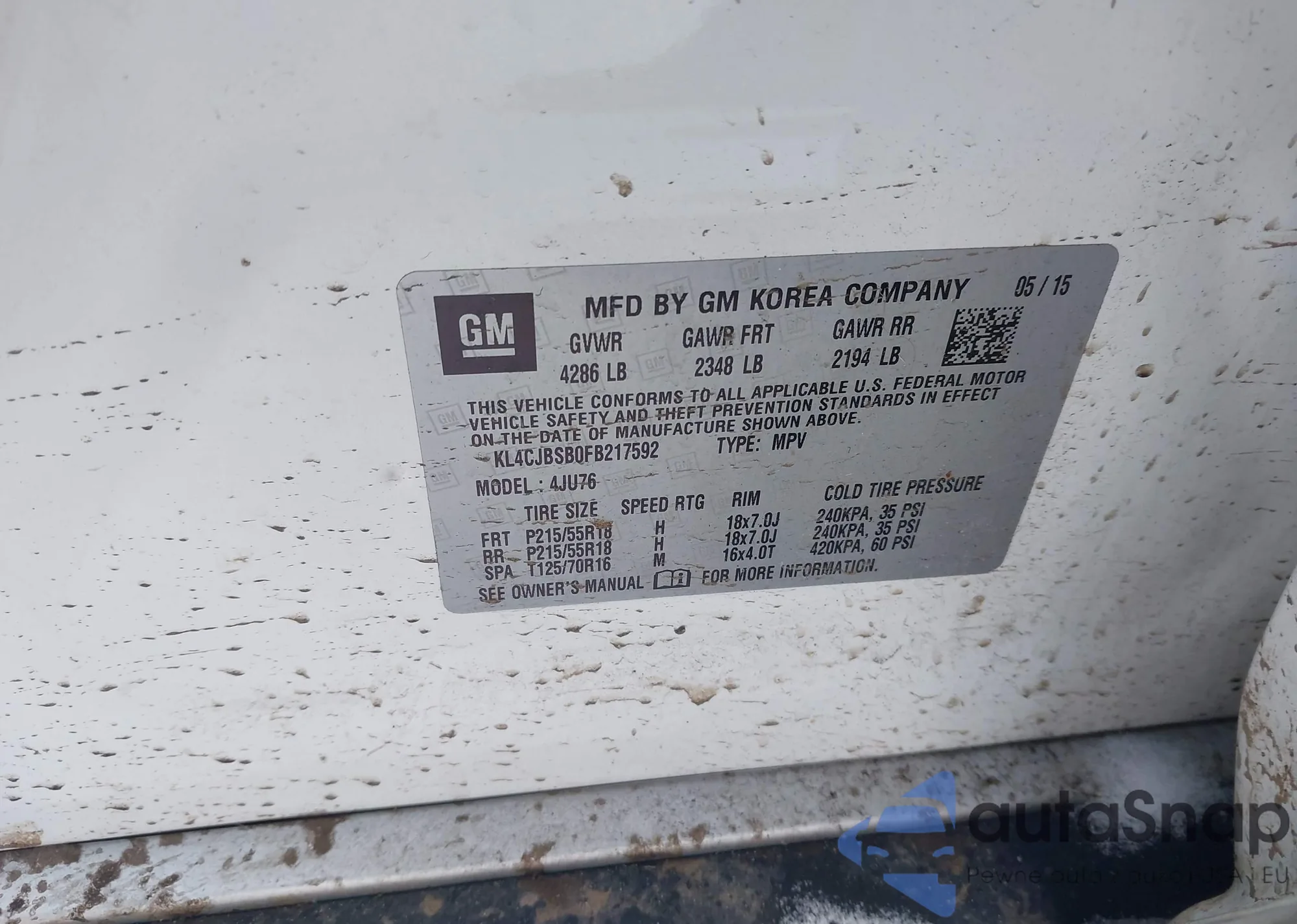 Автомобиль Buick Encore 2015 (VIN KL4CJBSB0FB217592) ранее не участвовал в торгах. Документы чистые, пробег соответствует или ниже среднего по рынку. Продаётся страховой компанией — рекомендуем покупку. Доставка в порт займет около 6–8 недель.