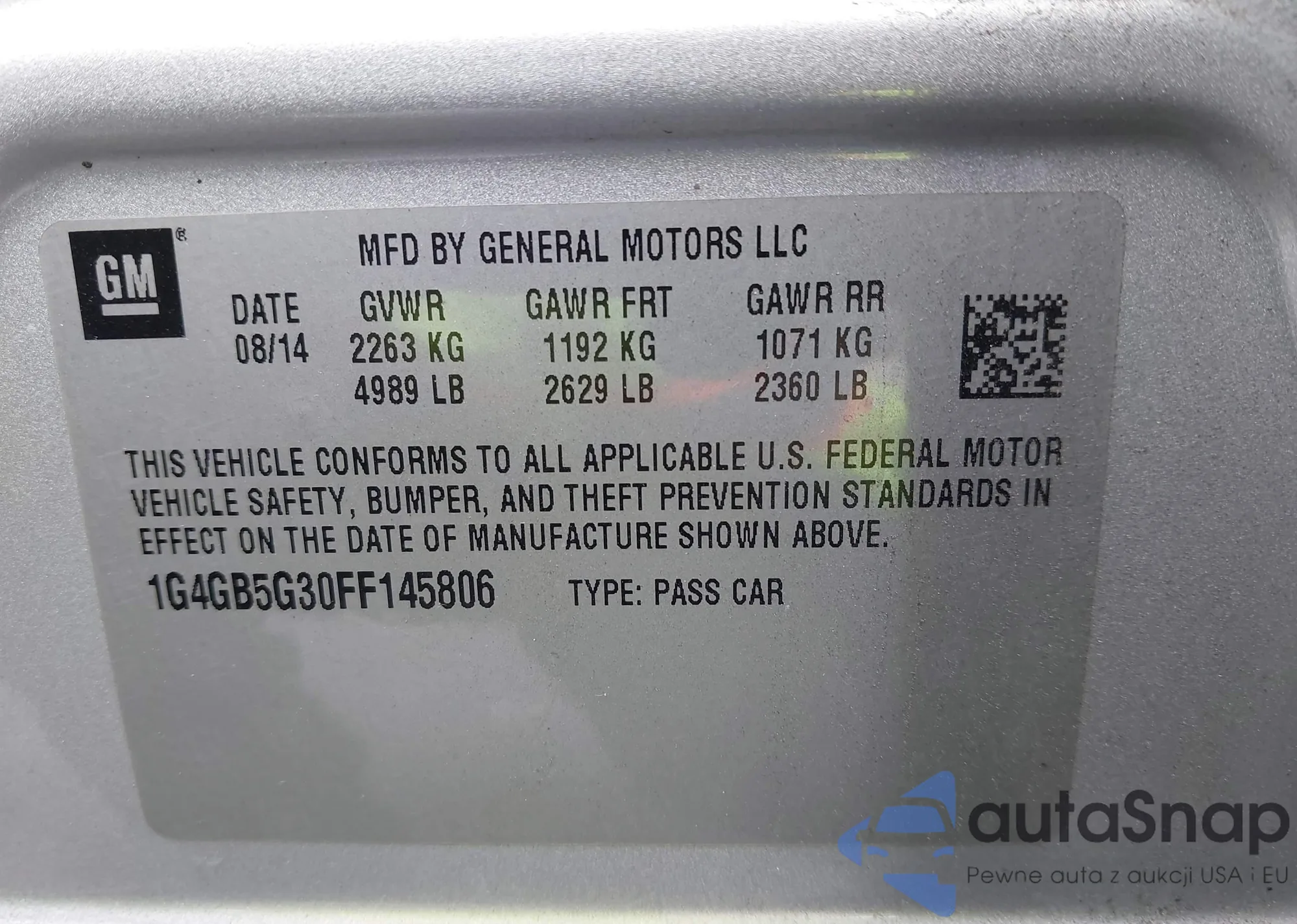 VIN: 1G4GB5G30FF145806