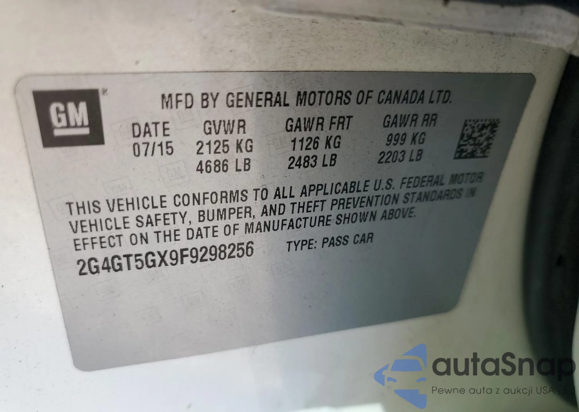 VIN: 2G4GT5GX9F9298256