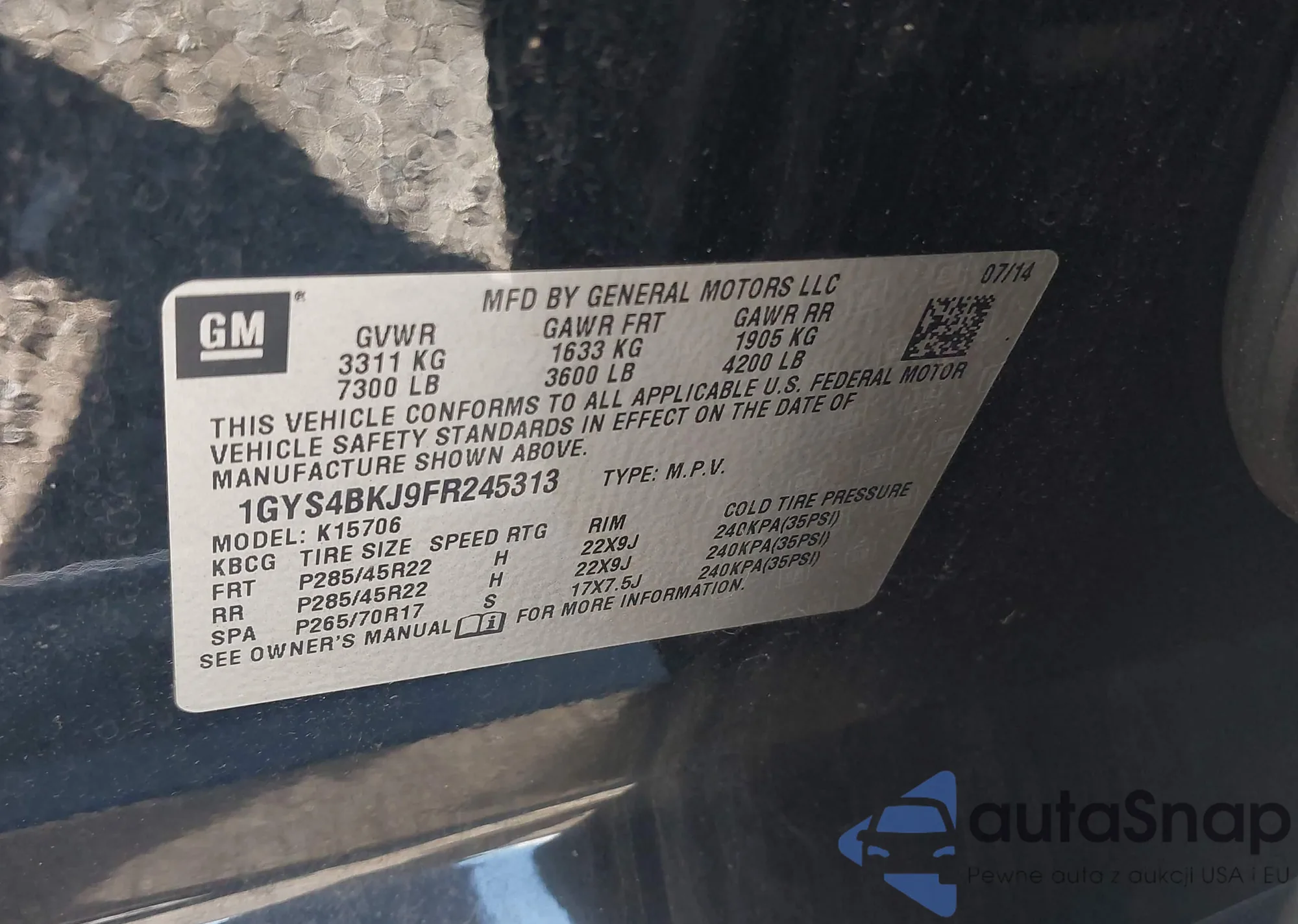 VIN: 1GYS4BKJ9FR245313
