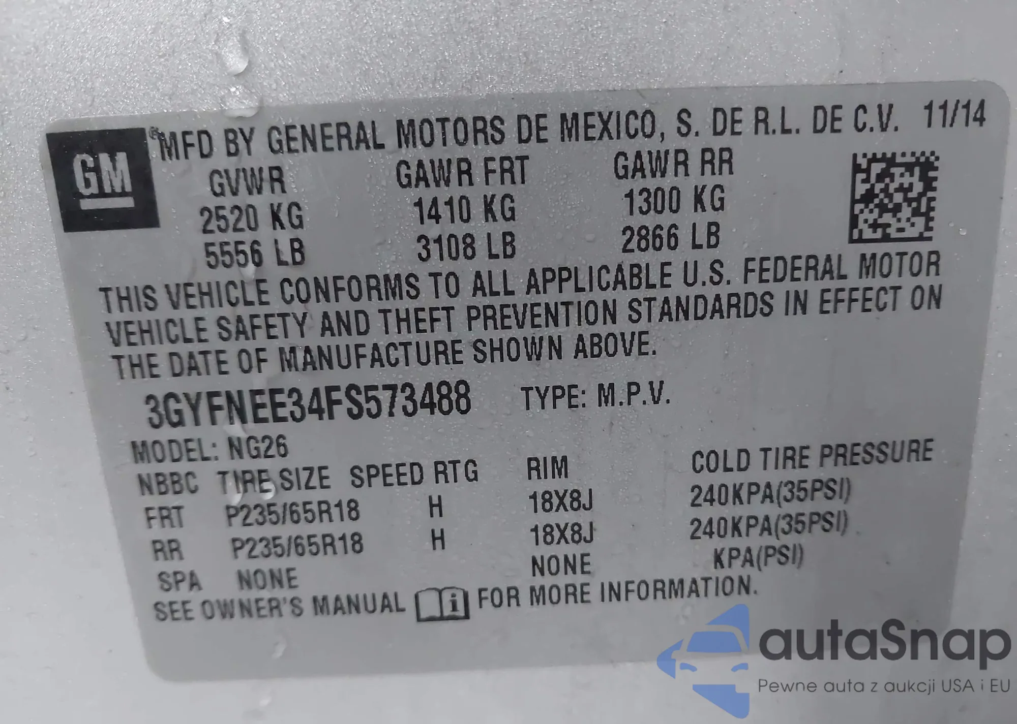 VIN: 3GYFNEE34FS573488