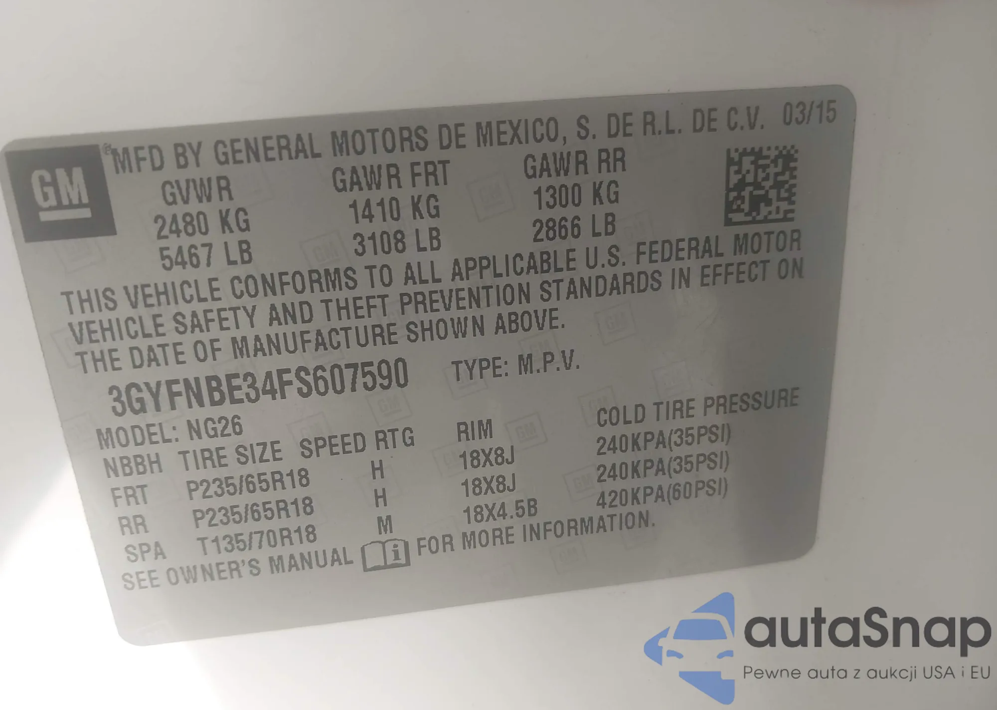 • VIN: 3GYFNBE34FS607590