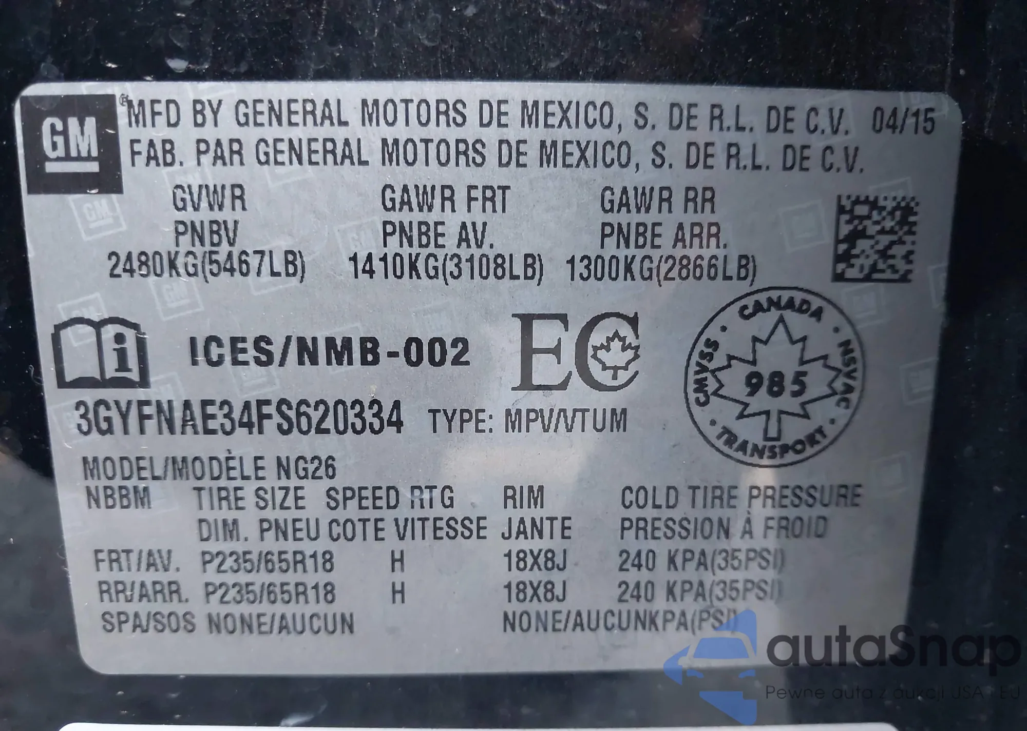 VIN: 3GYFNAE34FS620334